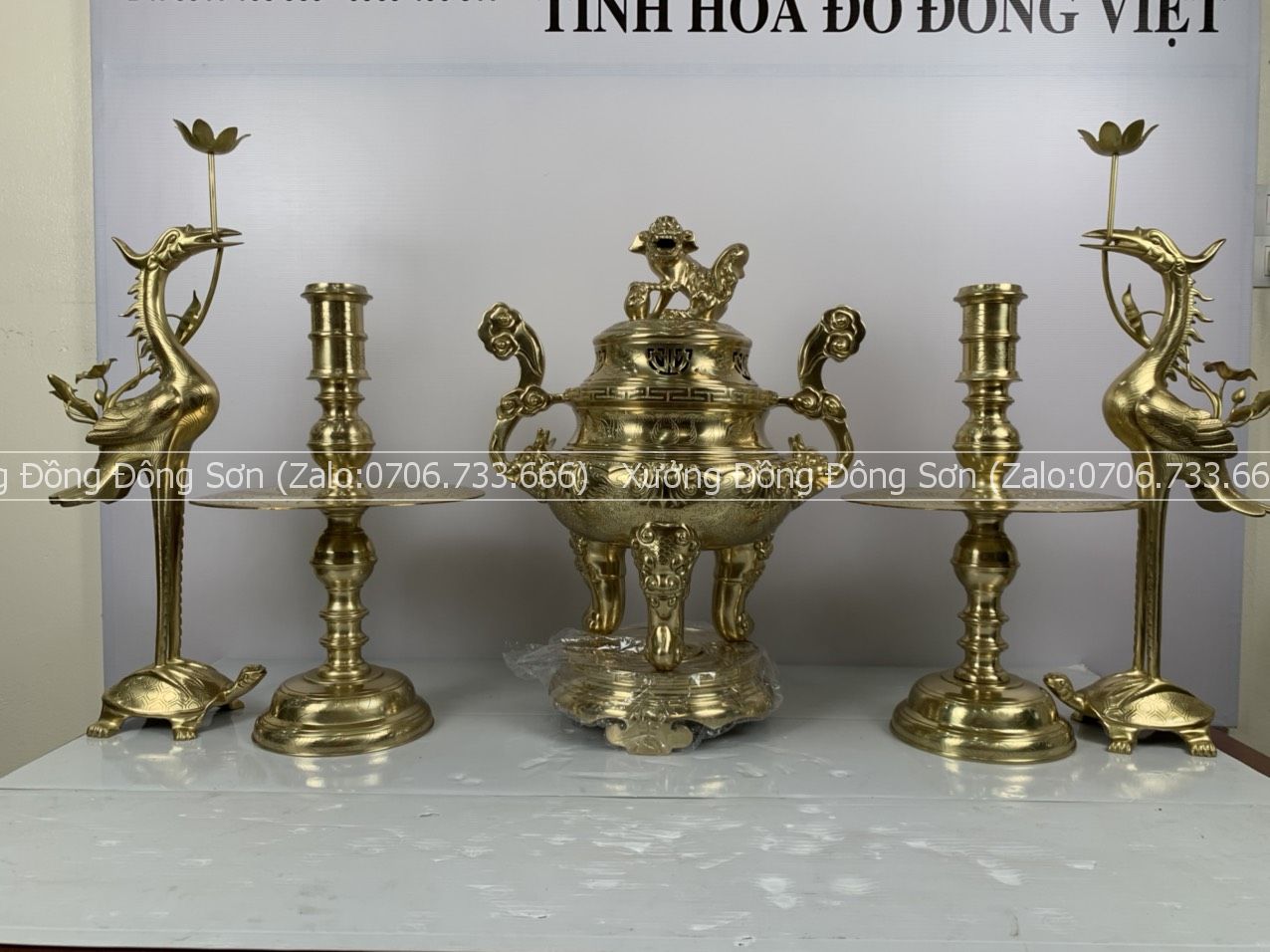 | Kích thước | - Đỉnh cao 50cm - Hạc cao 52cm - Nến cao 40cm - Sen nến 5cm |