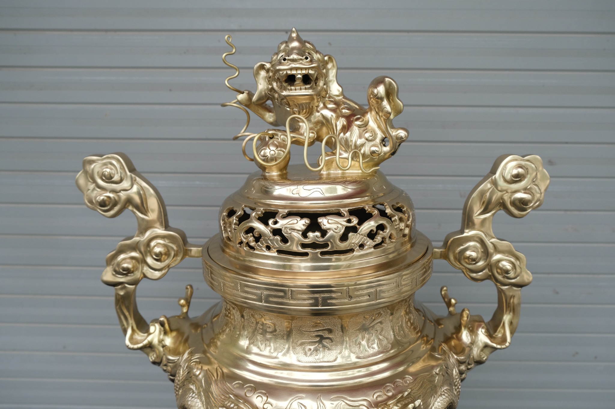 • Họa tiết trên đỉnh đồng, hạc, chân nến đều được thúc tay thủ công, không qua bất kì máy móc nào. Họa tiết được chạm trổ sắc nét, thúc nổi hoàn toàn trên bề mặt. Hình ảnh con nghê trên nắp đỉnh được đúc liền luôn với nắp đỉnh. Đây là một trong những đặc điểm rất quan trọng khi lựa chọn bộ ngũ sự đổng cát tút