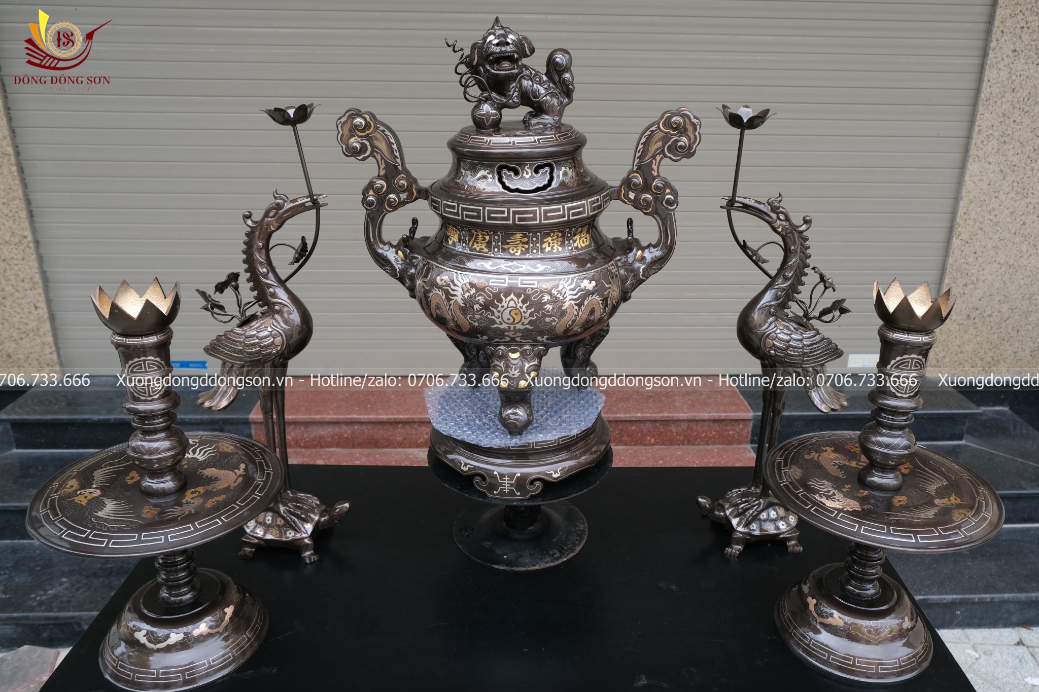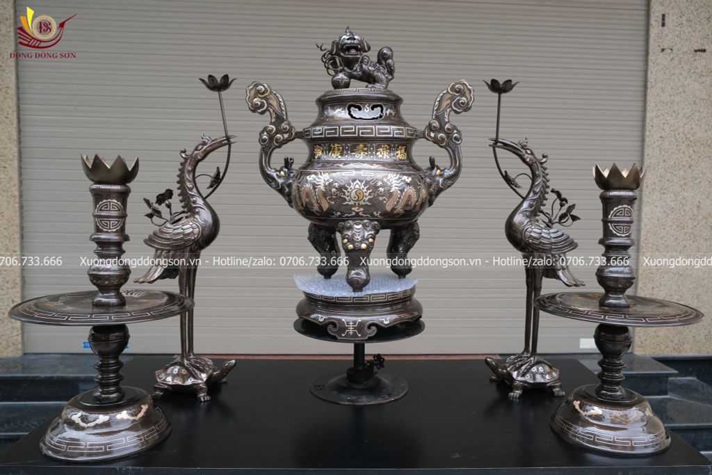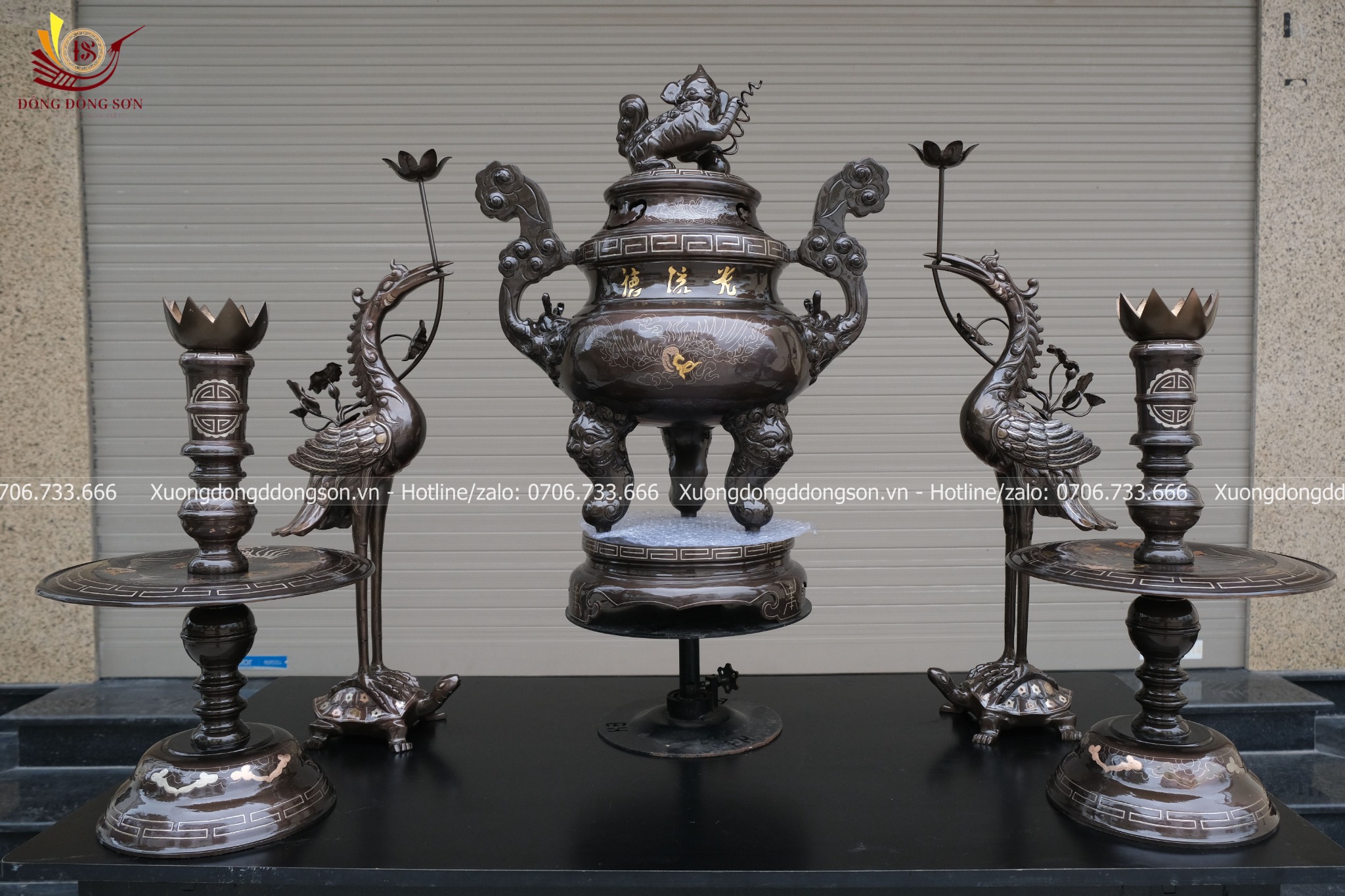 | Kích thước | - Đỉnh cao 60cm - Hạc cao 62cm - Nến cao 45cm - Sen nến 5cm |