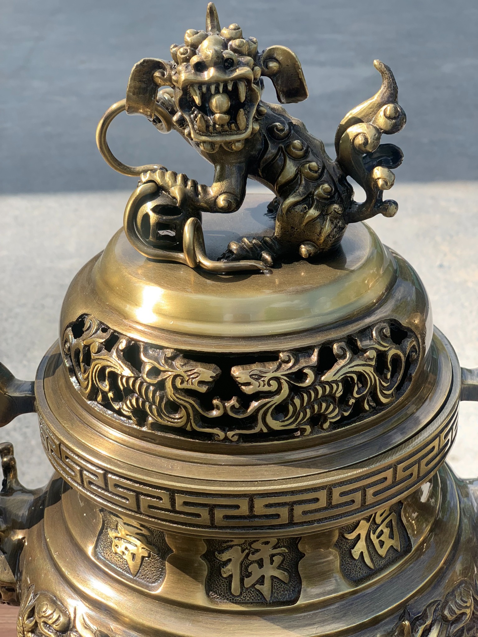 • Họa tiết trên đỉnh đồng, hạc, chân nến đều được làm bằng những kỹ thuật đúc cao. Họa tiết được chạm trổ sắc nét, thúc nổi hoàn toàn trên bề mặt. Hình ảnh con nghê trên nắp đỉnh được gắn chắc chắn với nắp đỉnh.