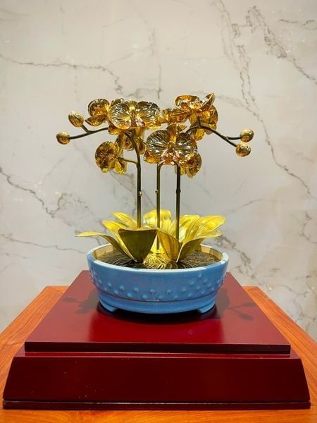 Chậu lan bằng đồng mạ vàng 24K 3 cành