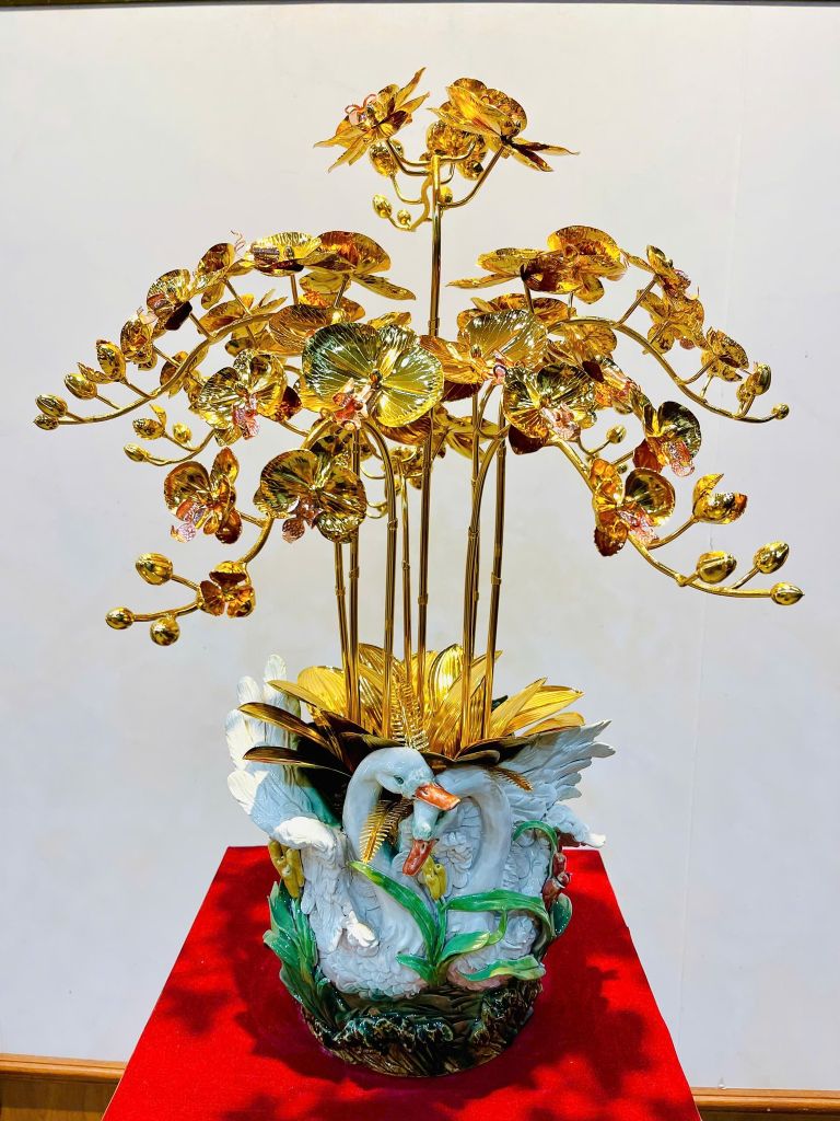 Hoa lan tượng trưng cho sự tinh tế, thanh cao và thịnh vượng. Khi được chế tác bằng đồng và mạ vàng 24K, vẻ đẹp ấy càng trở nên sang trọng, bền vững và giàu ý nghĩa phong thủy.