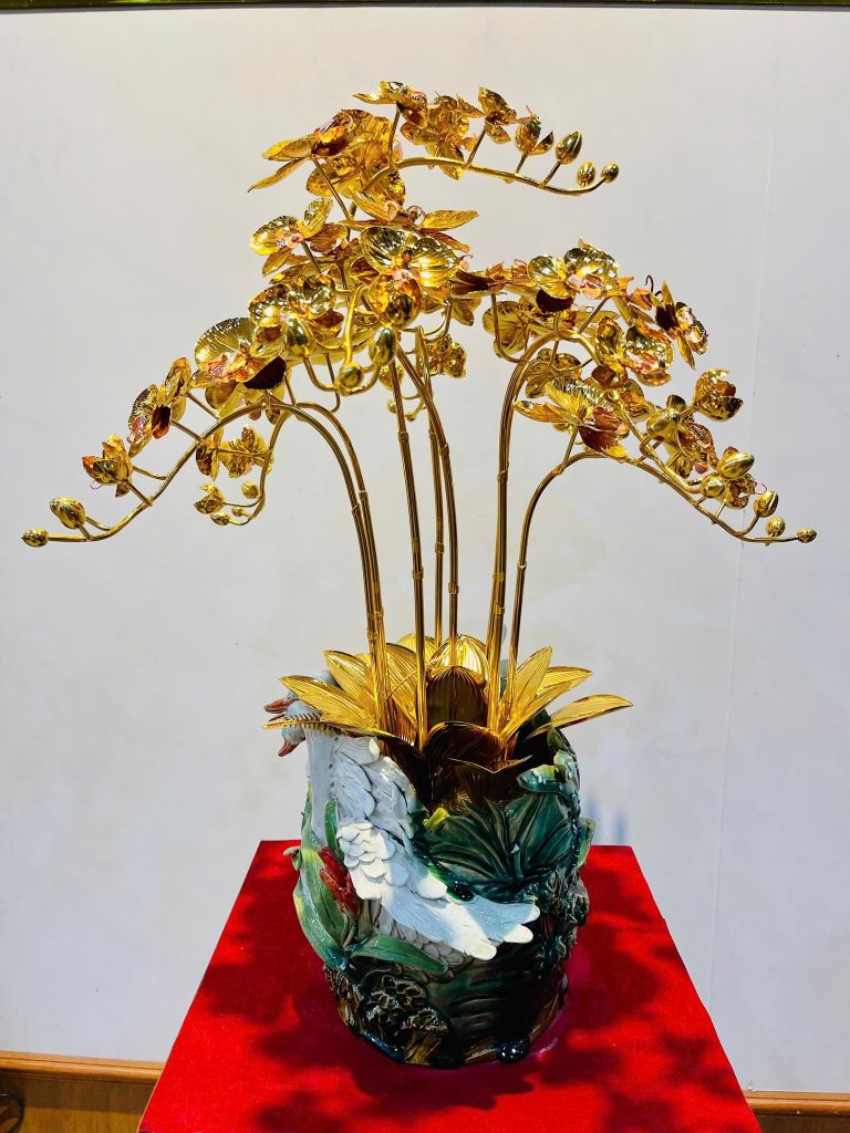 Chậu Lan Đồng Mạ Vàng 24K không chỉ là vật phẩm trang trí đẳng cấp mà còn là lời chúc về tài lộc, may mắn và sự thăng hoa trong cuộc sống – món quà tặng ý nghĩa dành cho người trân quý.