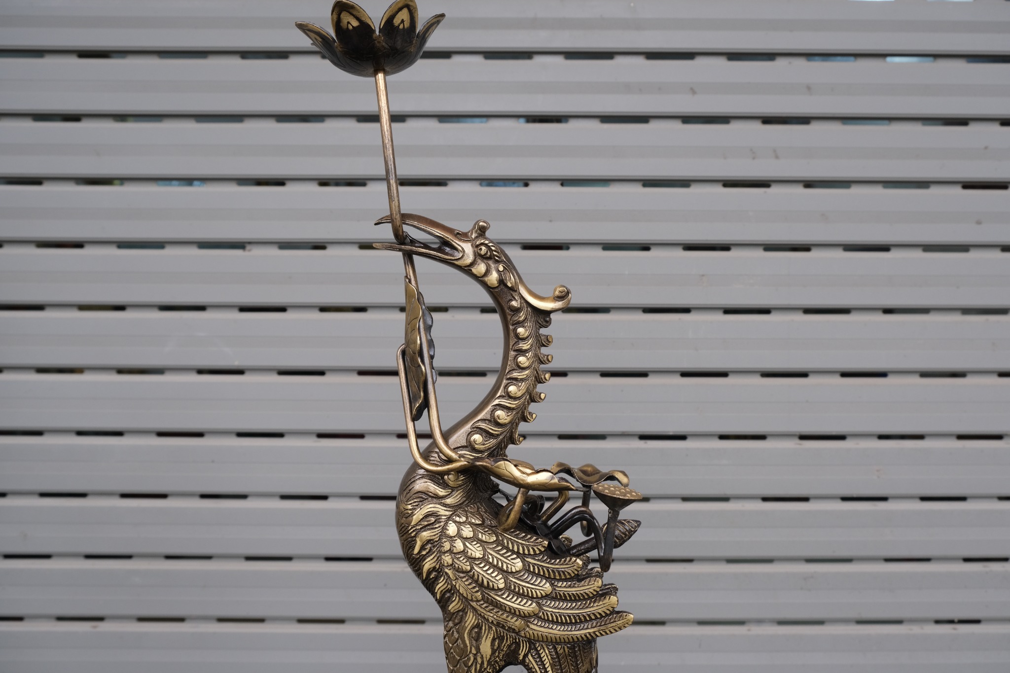 + Đặt tại đình chùa: Ở đình chùa, hạc chầu được đặt ở cổng, trước cửa ra vào hay hai bên ban thờ chính điện. Đình chùa vốn là nơi linh thiêng nên việc đặt hạc chầu ở mặt tiền sẽ tạo cảm giác trang trọng, uy nghiêm cho không gian.