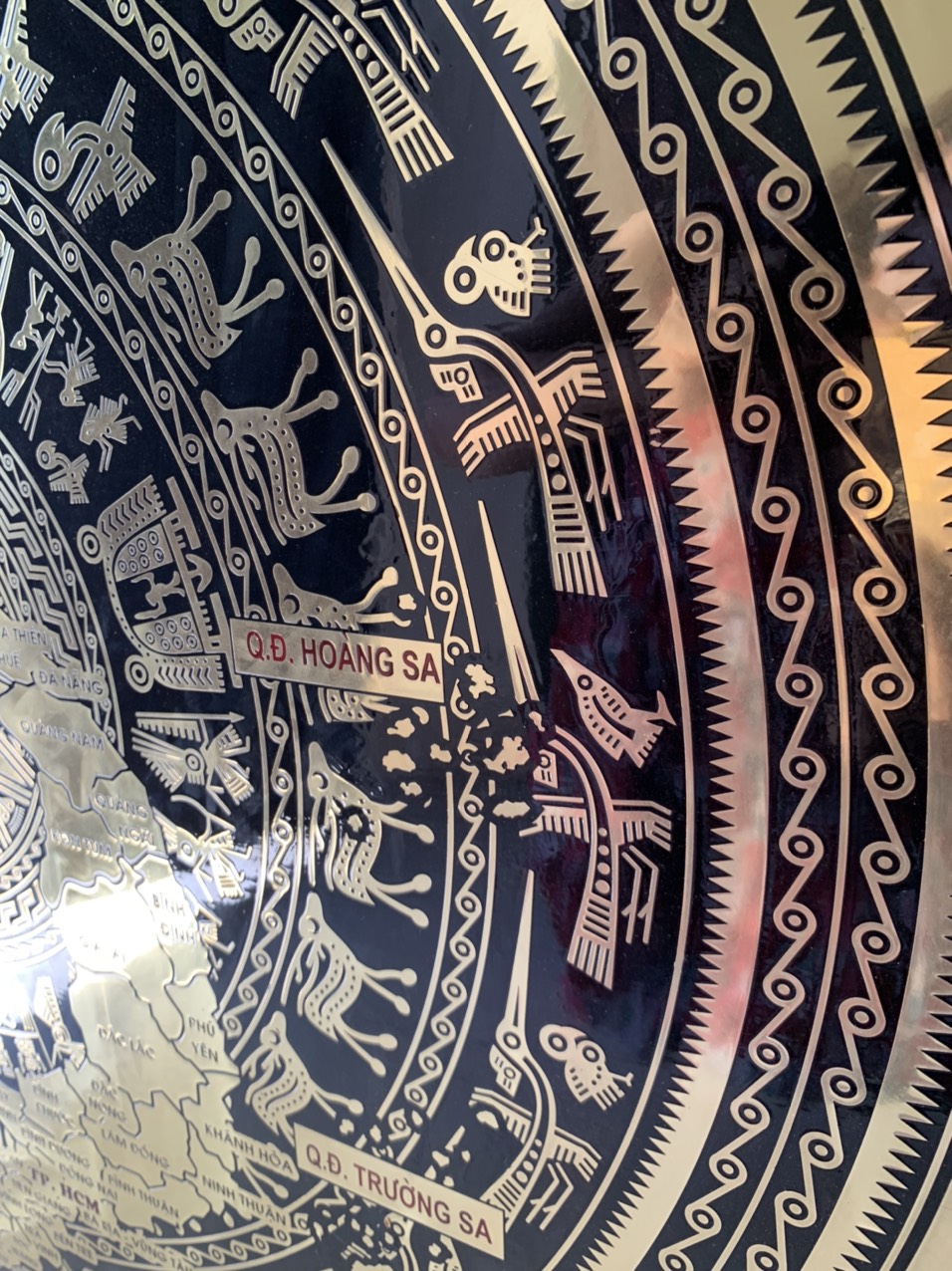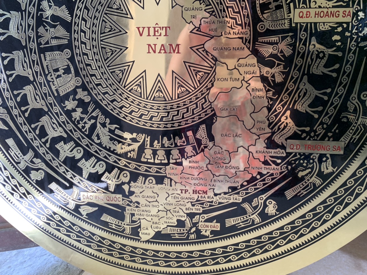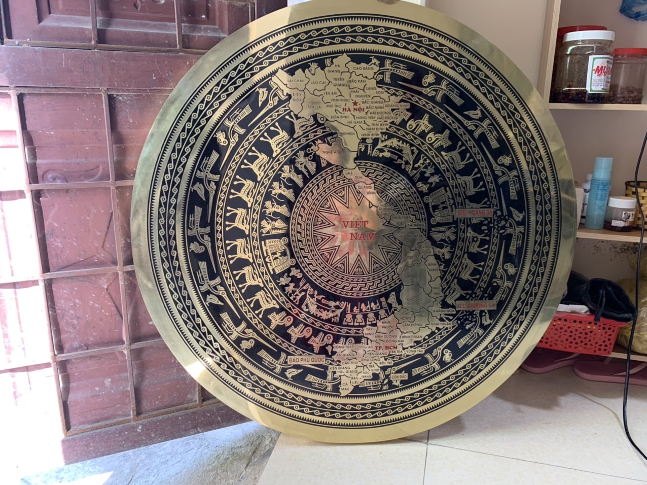 • Mặt trống đồng là hình ảnh biểu tượng của dận tộc Việt Nam. Chính vì vậy nên chọn vị trí sang trọng, linh thiêng để trang trí hoặc treo mặt trống.