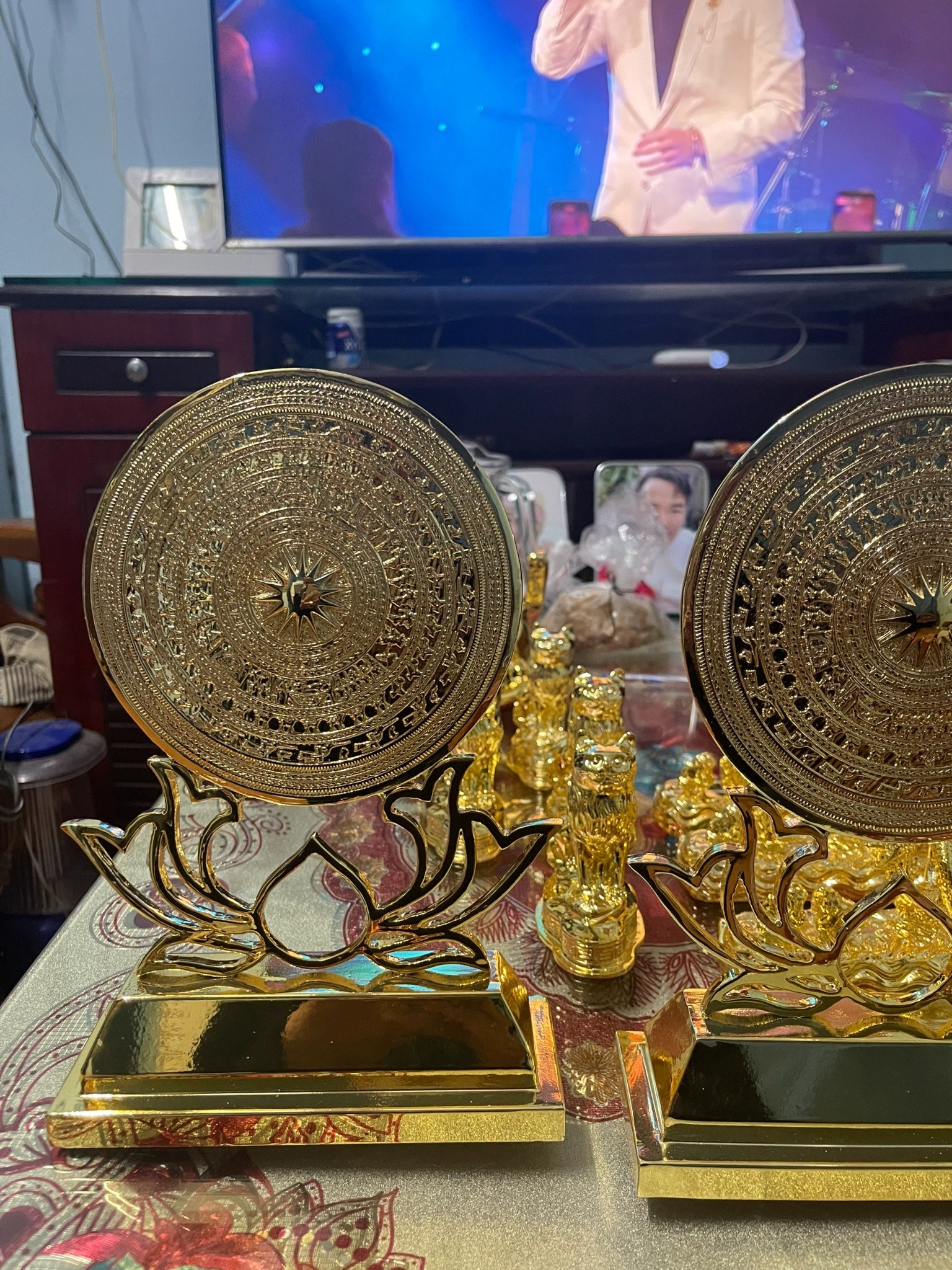 | Chất liệu | - Mặt trống đồng được làm bằng chất liệu đồng vàng |