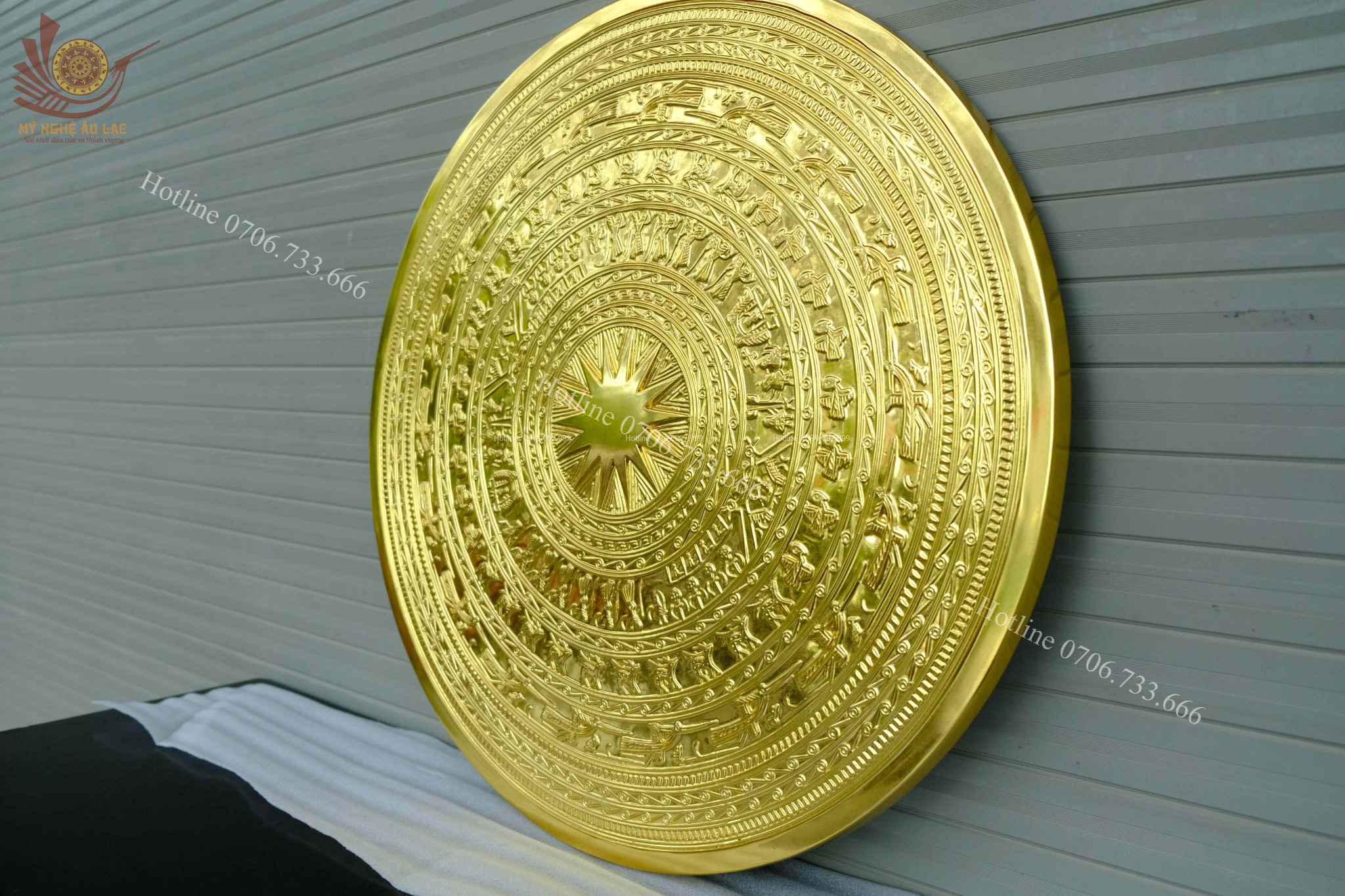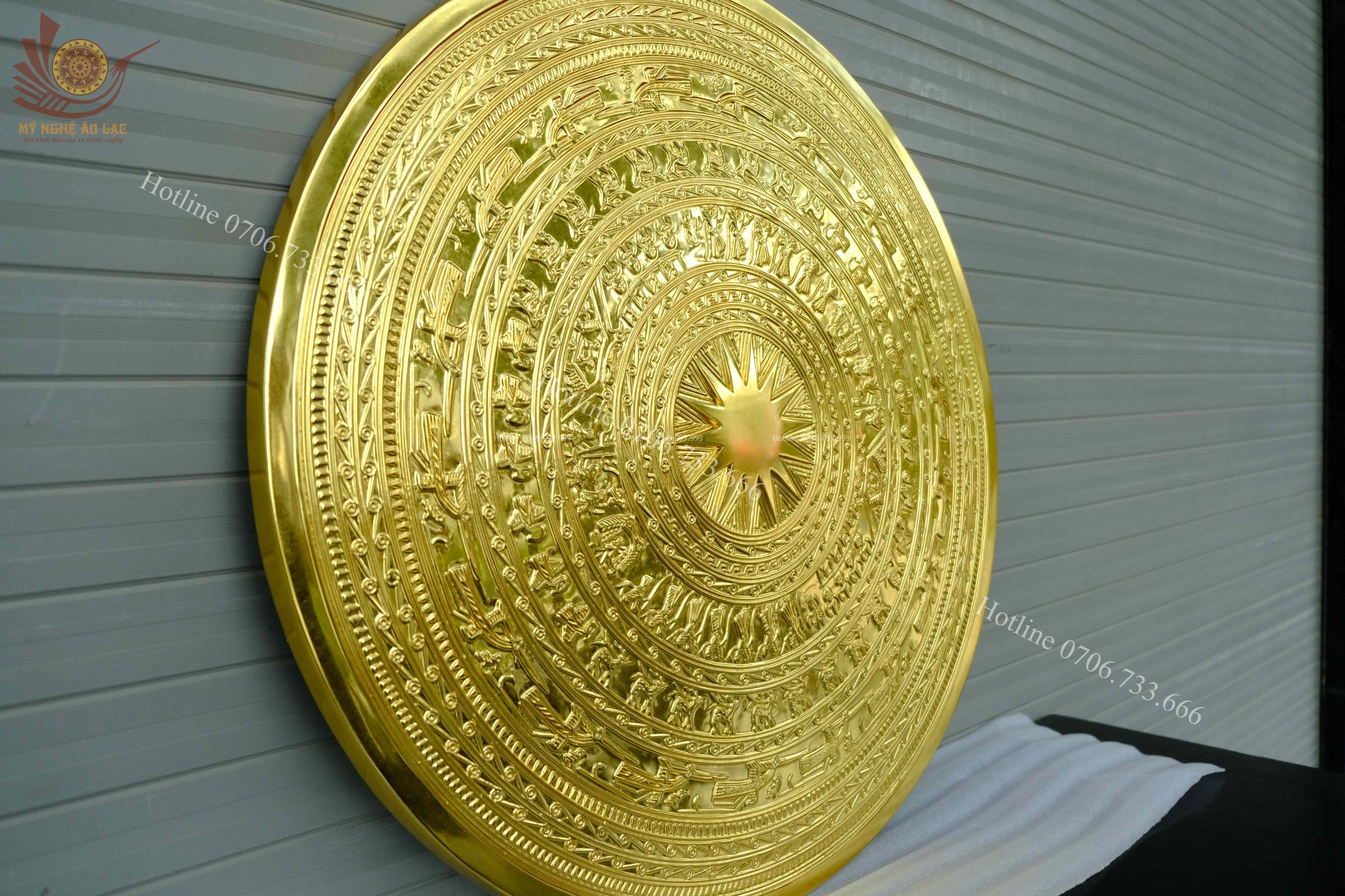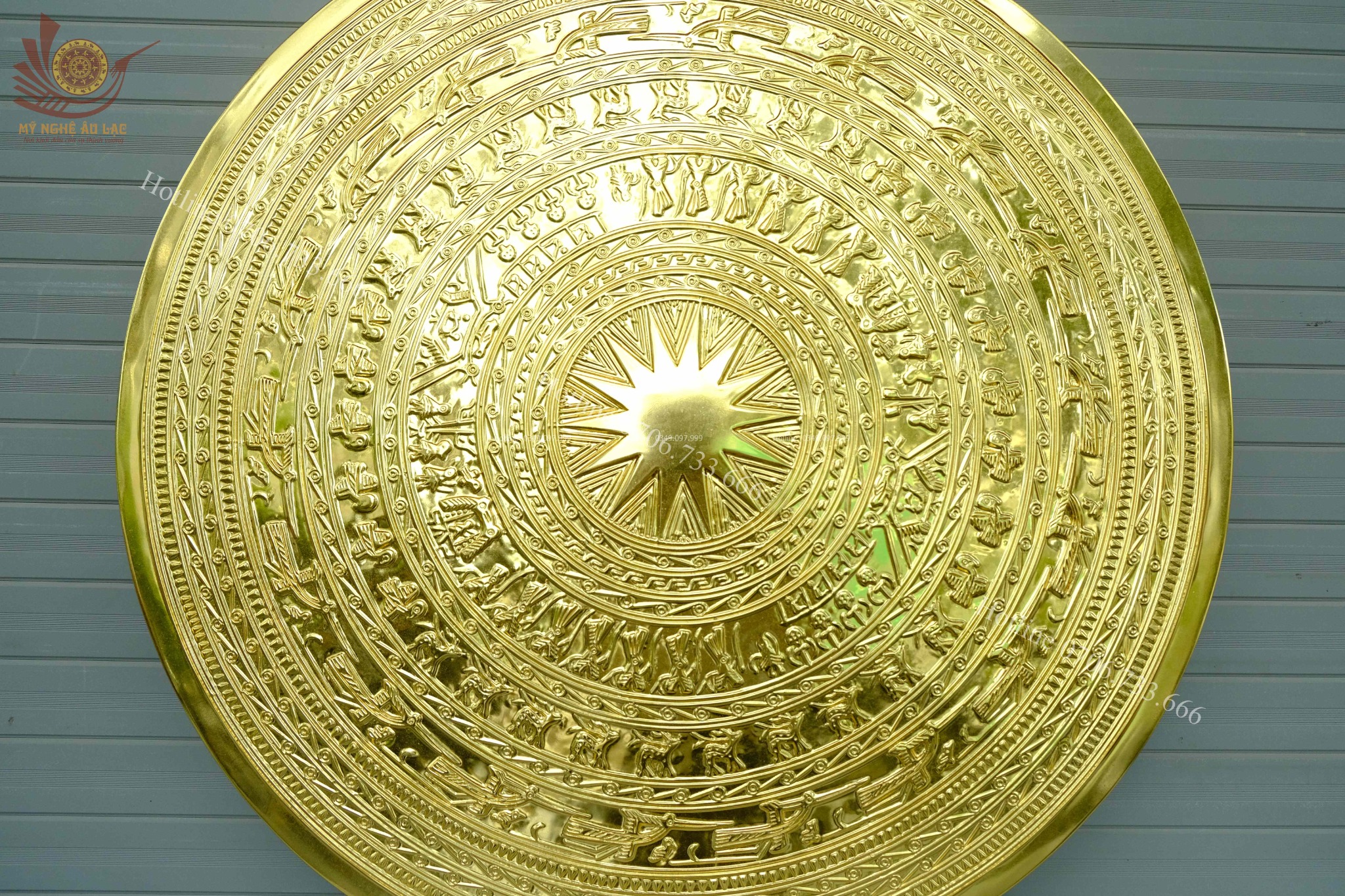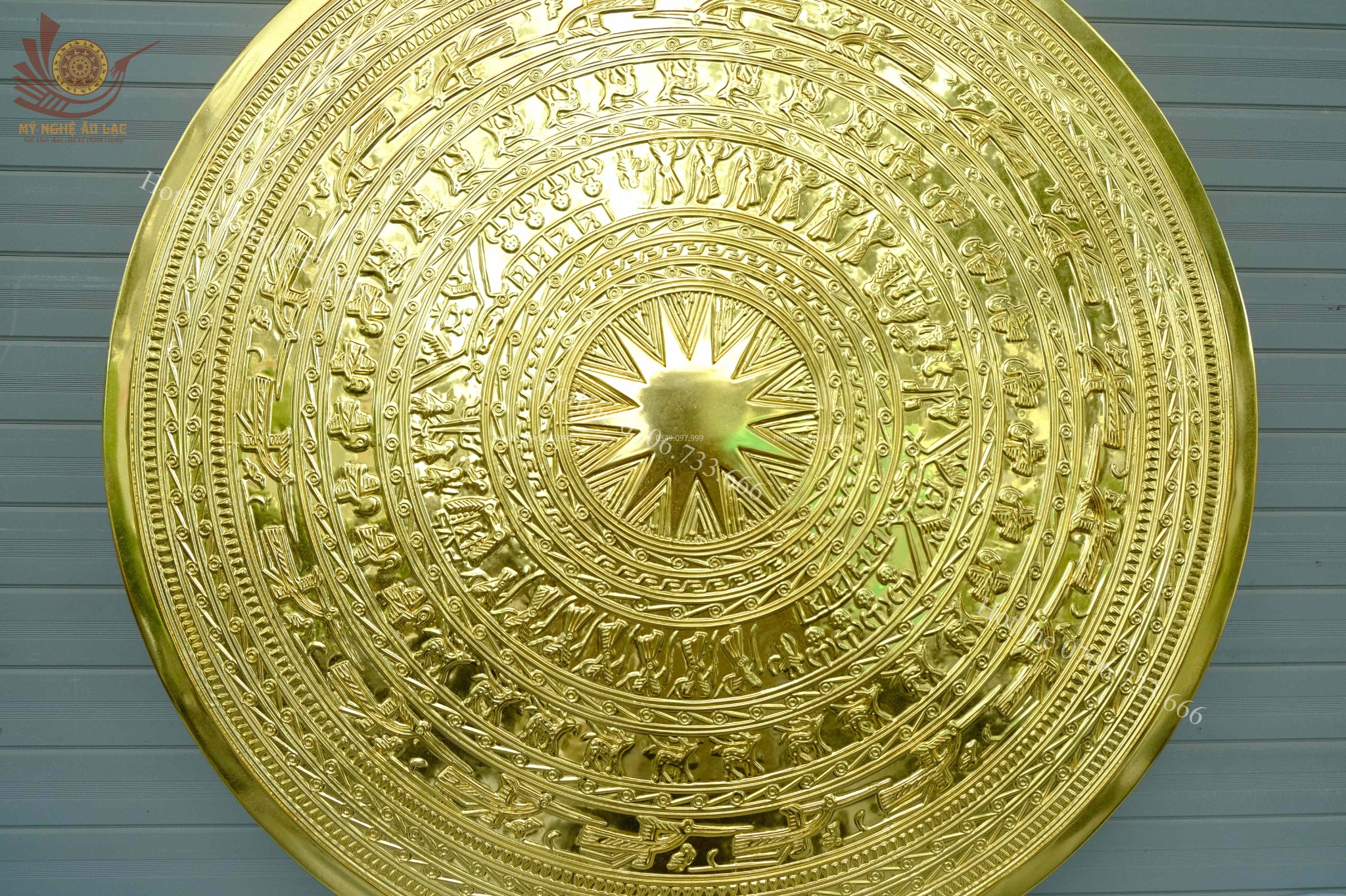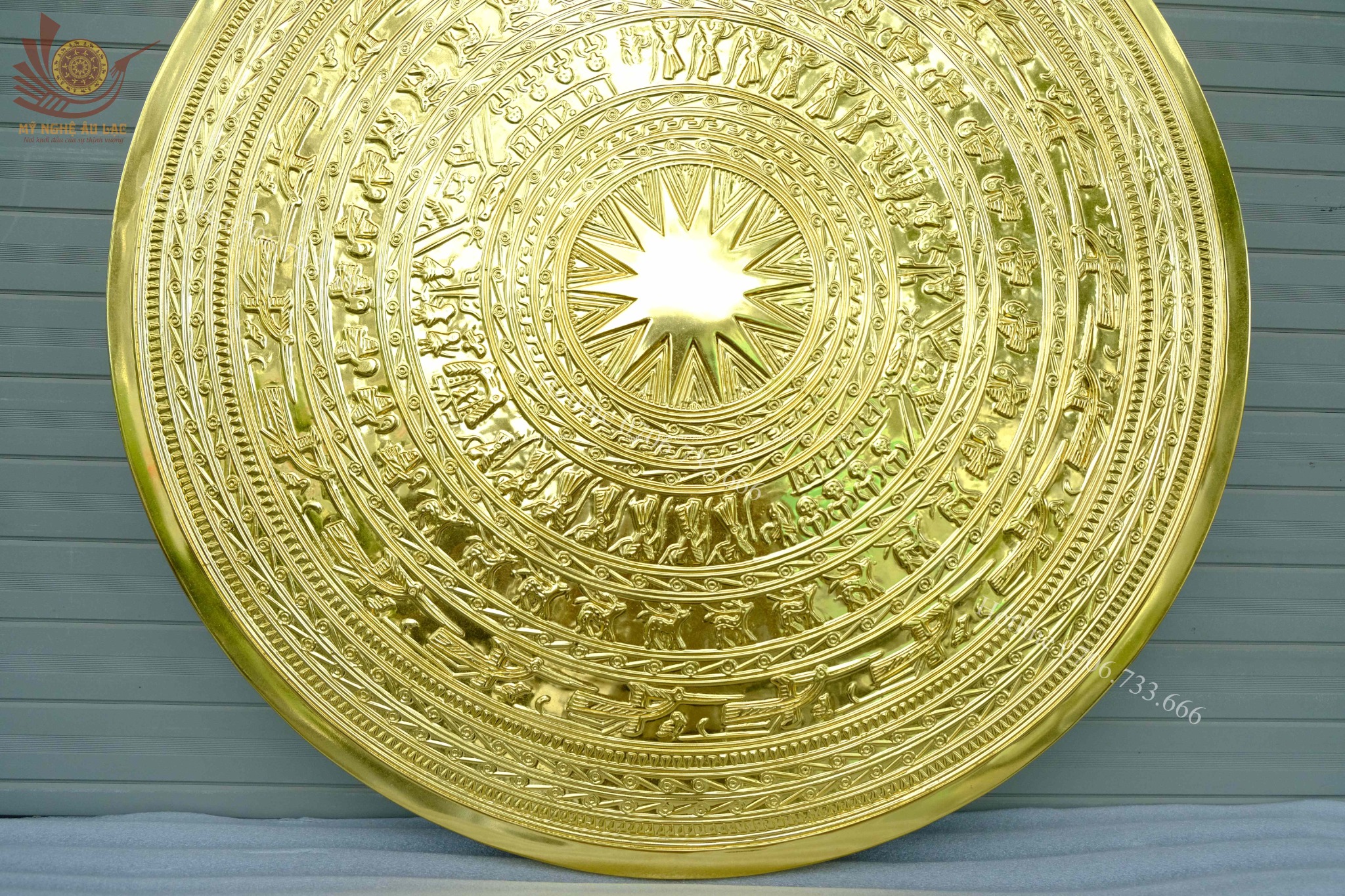 | Chất liệu | - Mặt trống đồng được làm bằng chất liệu đồng đỏ - Màu đồng đỏ mộc - Dát vàng 24K |