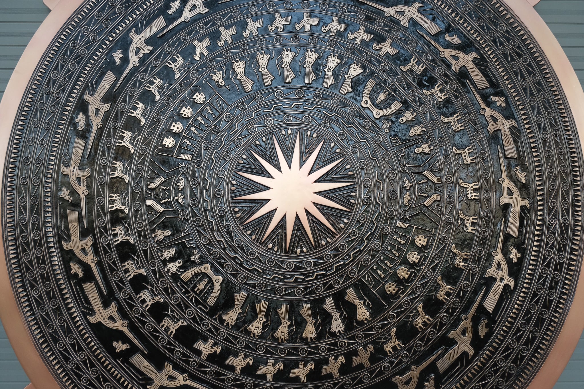 • Mặt trống đồng là hình ảnh biểu tượng của dận tộc Việt Nam. Chính vì vậy nên chọn vị trí sang trọng, linh thiêng để trang trí hoặc treo mặt trống.