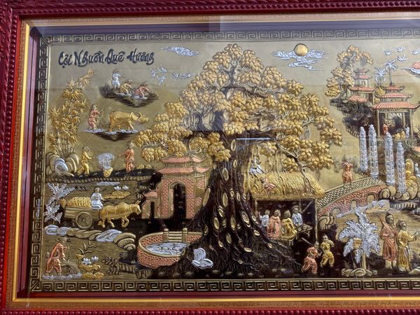 | Chất liệu | - Khung gỗ Sồi Nga - Tranh được làm bằng đồng vàng nguyên tấm |