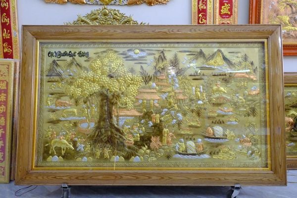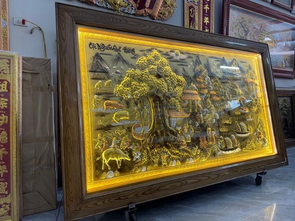 | Chất liệu | - Khung gỗ Sồi Nga - Tranh được làm bằng đồng vàng nguyên tấm |
