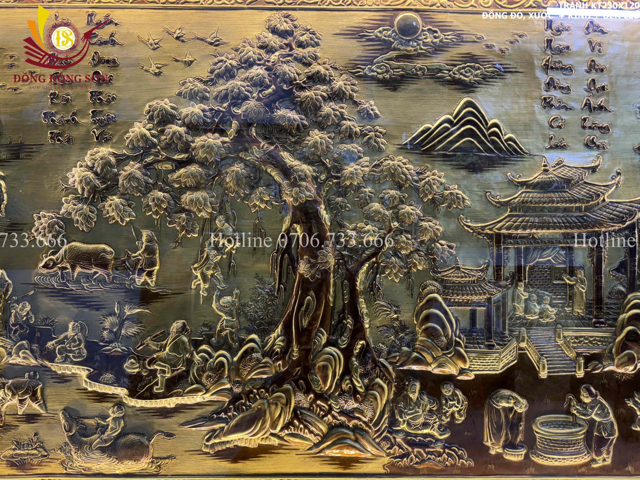 | Chất liệu | - Khung gỗ Sồi Nga - Tranh được làm bằng đồng vàng nguyên tấm |