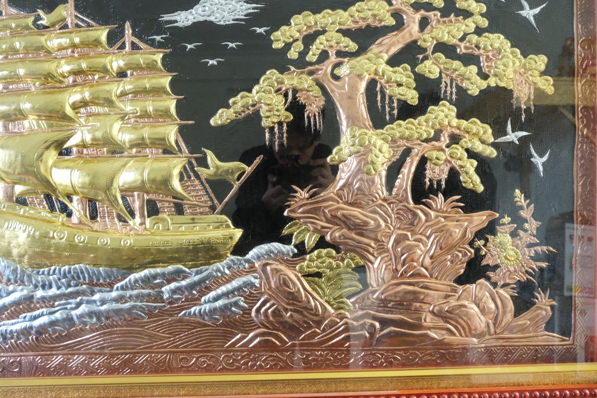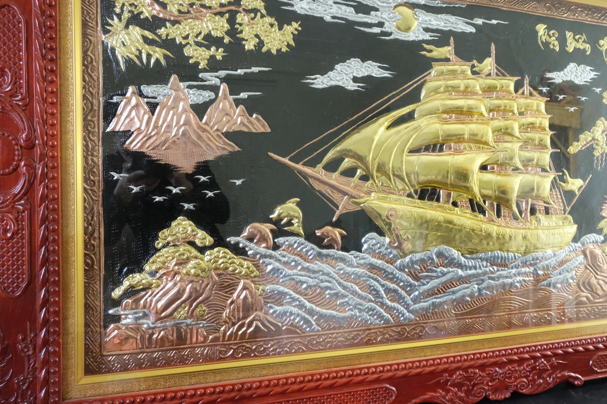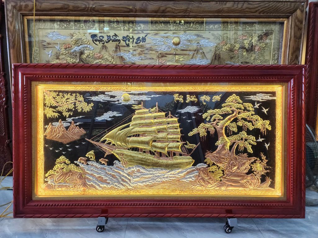 | Chất liệu | - Khung gỗ Sồi Nga - Tranh được làm bằng đồng đỏ nguyên tấm |