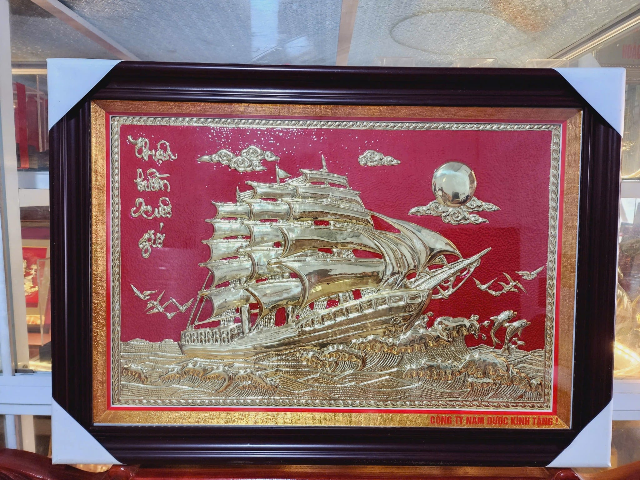 | Chất liệu | - Khung gỗ - Tranh được làm bằng đồng vàng nguyên tấm |