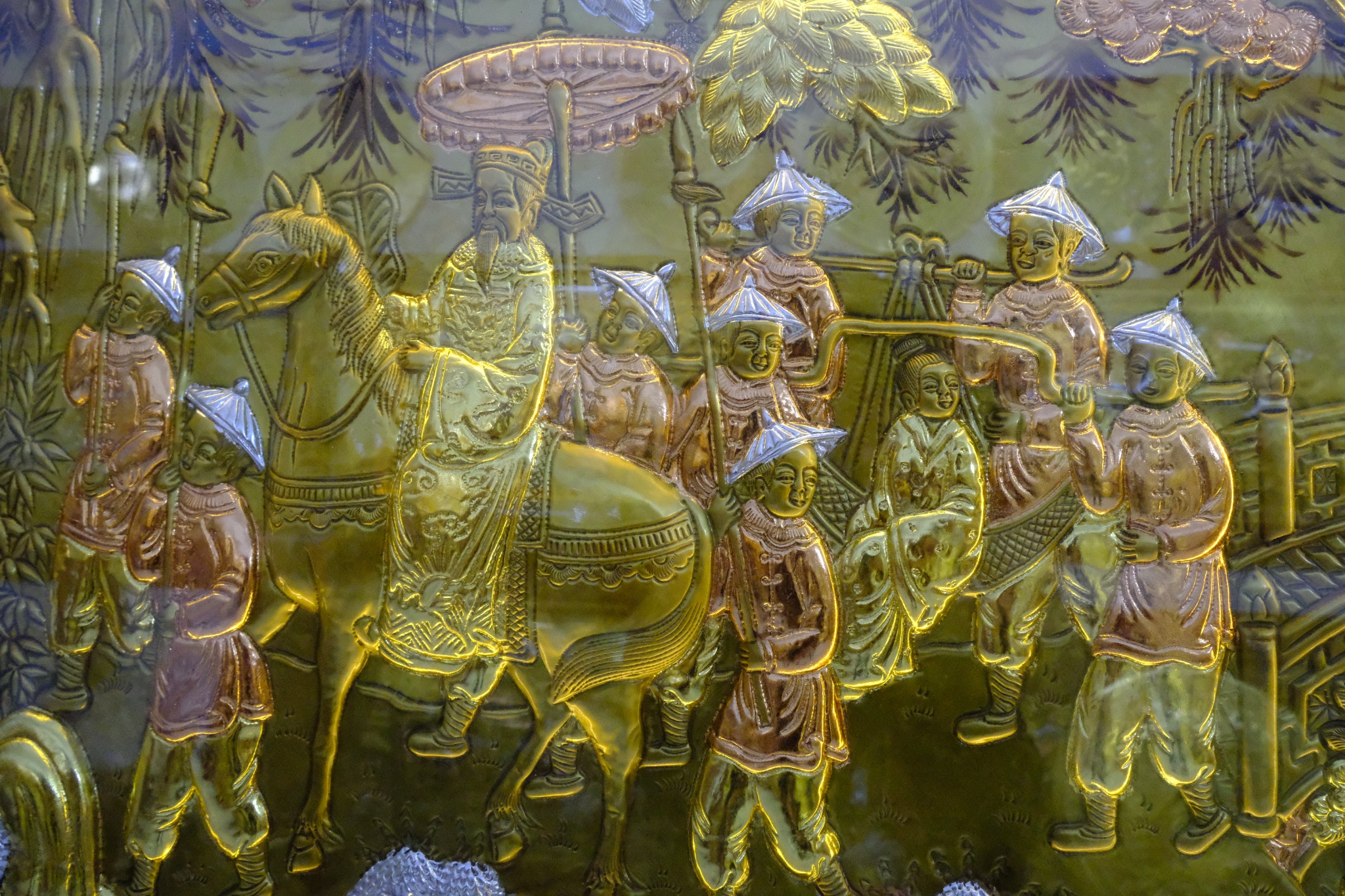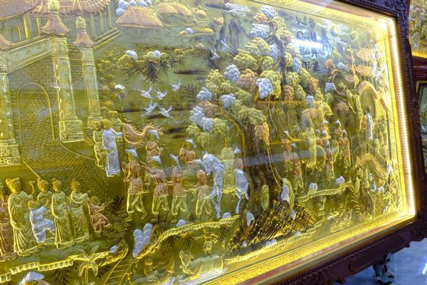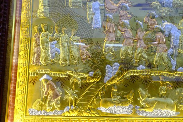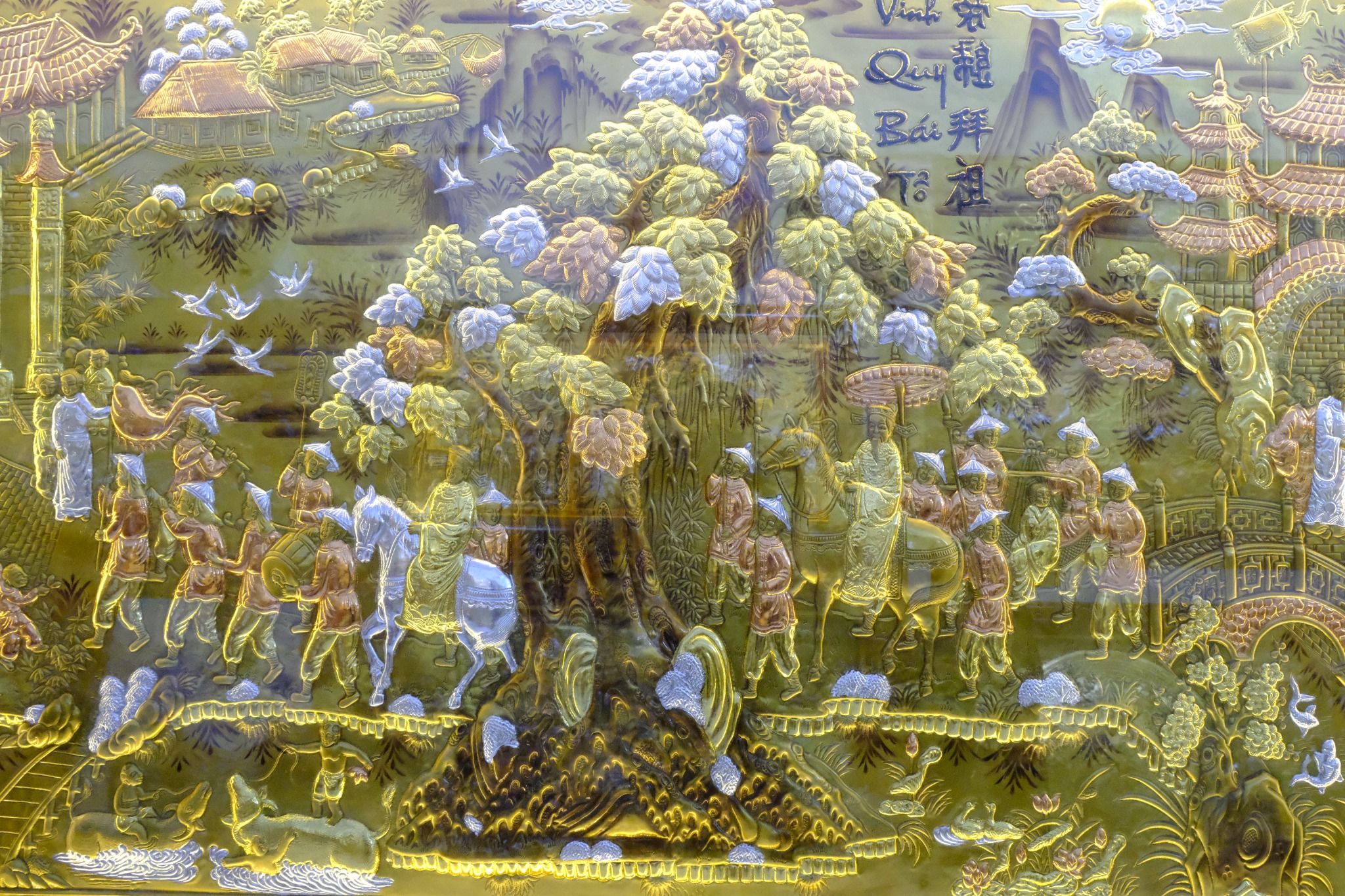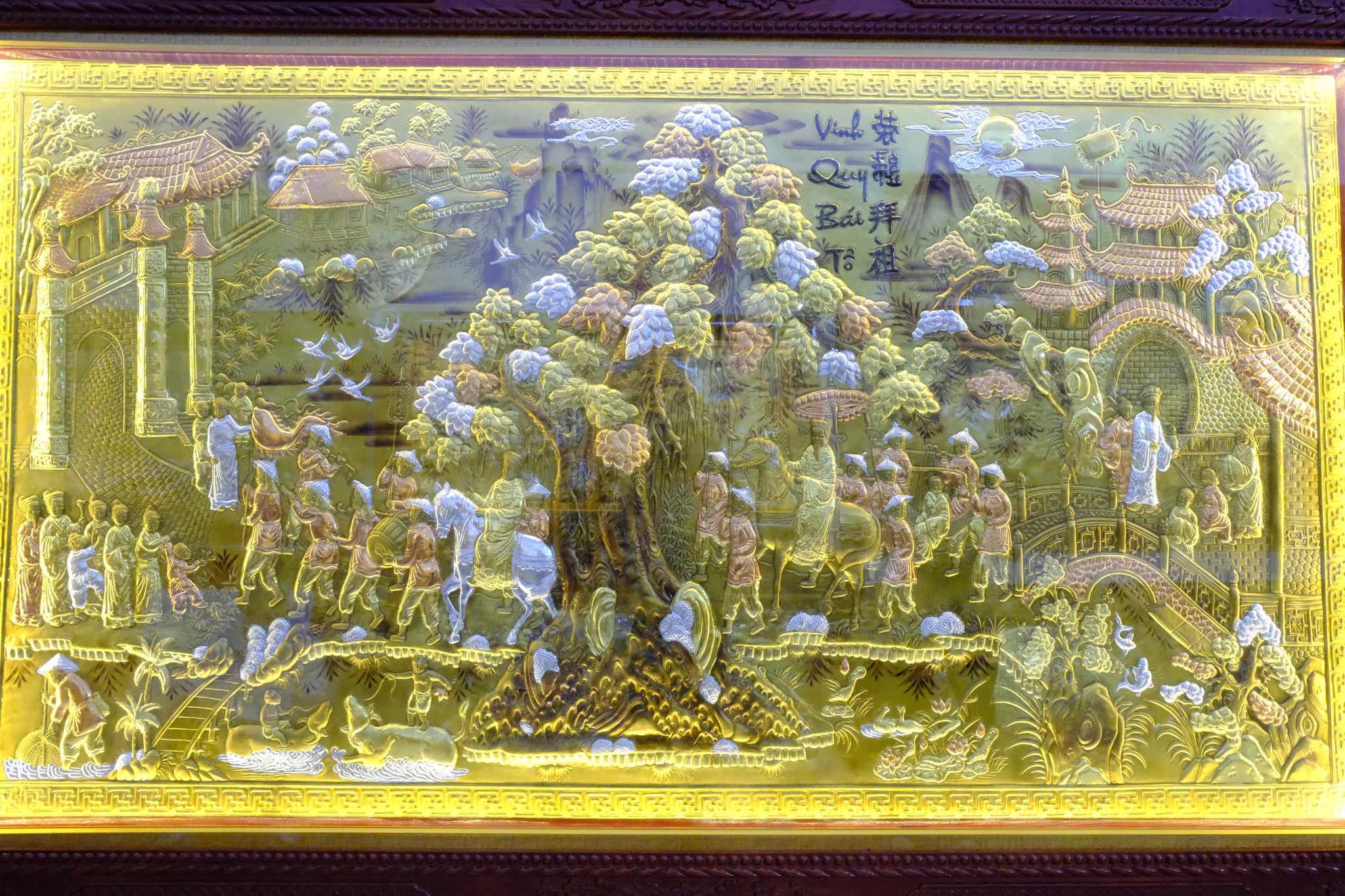 • Tranh đồng vinh quy bái tổ được người nghệ nhân chạm khắc bằng tay tỉ mỉ đến từng chi tiết. Bề mặt còn được phủ bóng để giữ cho màu sắc của tranh được bền hơn. Hơn thế, bên ngoài còn được phú một lớp kính để tránh cho tấm đồng tiếp xúc với không khí bên ngoài, để tăng thêm độ bền cho bức tranh.