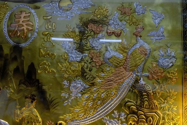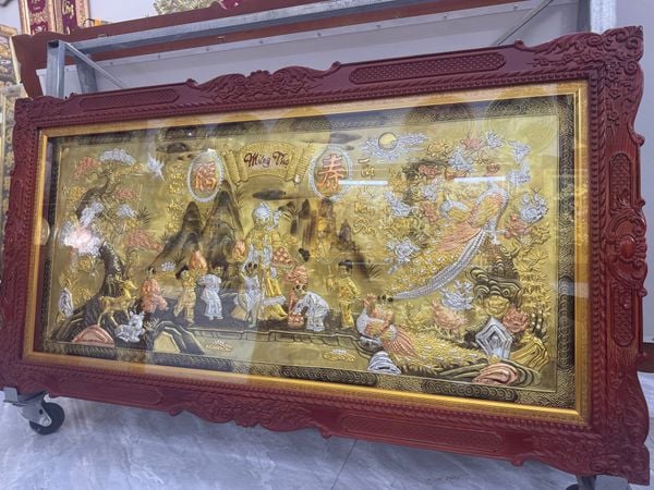 | Màu sắc | - Tranh nền vàng, nổi bật với các họa tiết được dát tam khí: đồng đỏ, vàng, bạc - Khung gỗ làm theo màu sắc yêu cầu |
