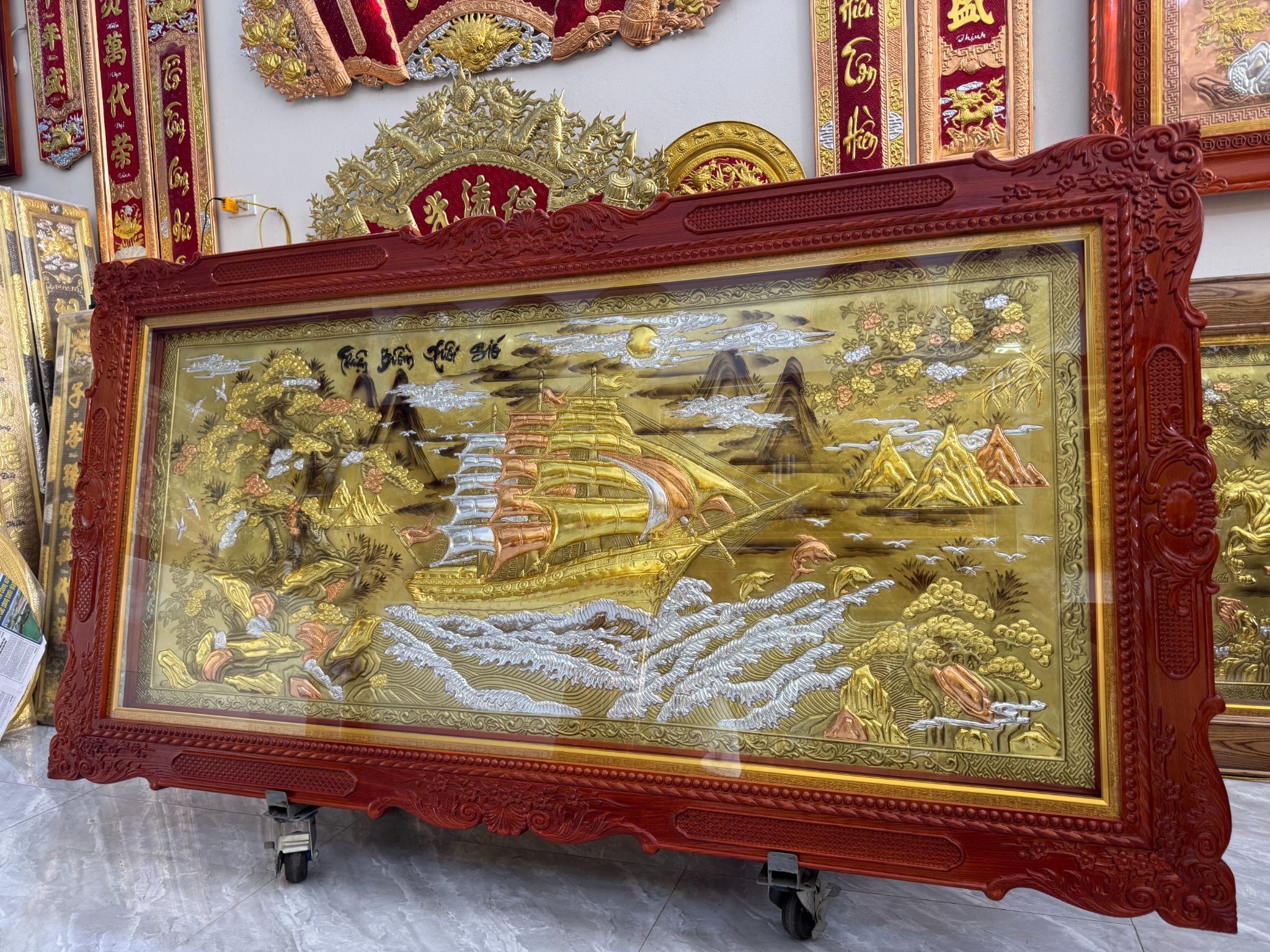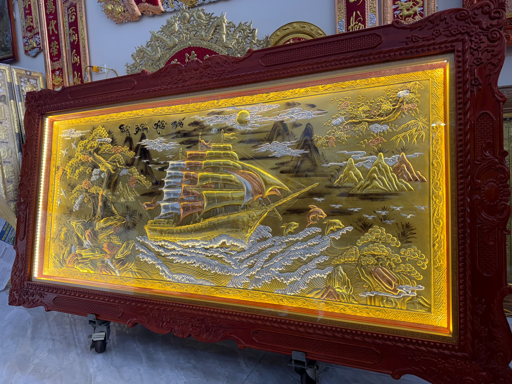 | Chất liệu | - Khung gỗ Sồi Nga - Tranh được làm bằng đồng vàng nguyên tấm |