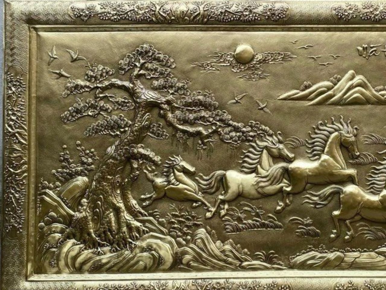 | Chất liệu | - Khung đồng liền - Tranh được làm bằng đồng vàng nguyên tấm |