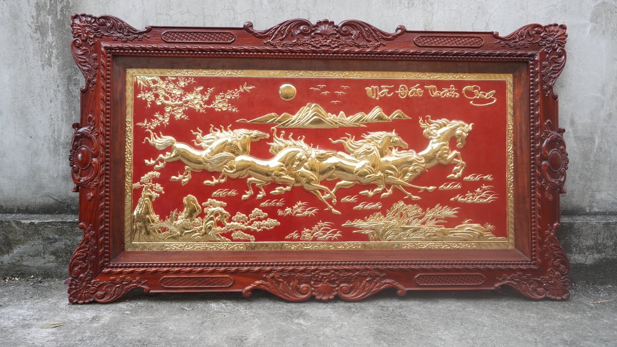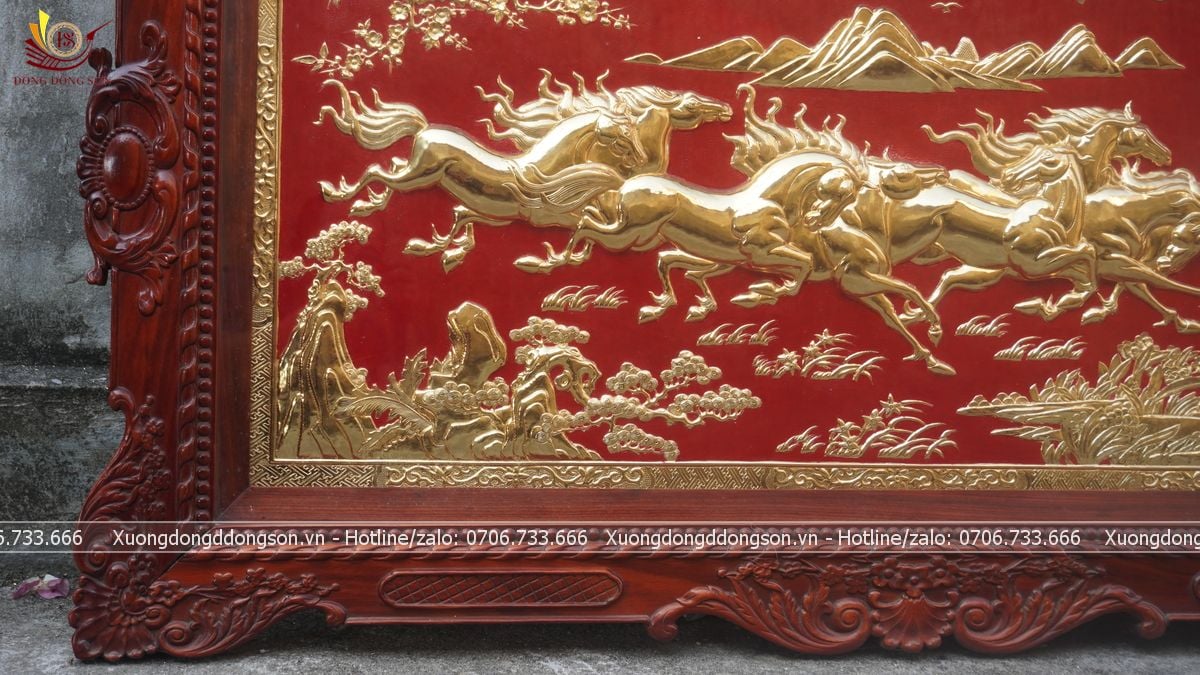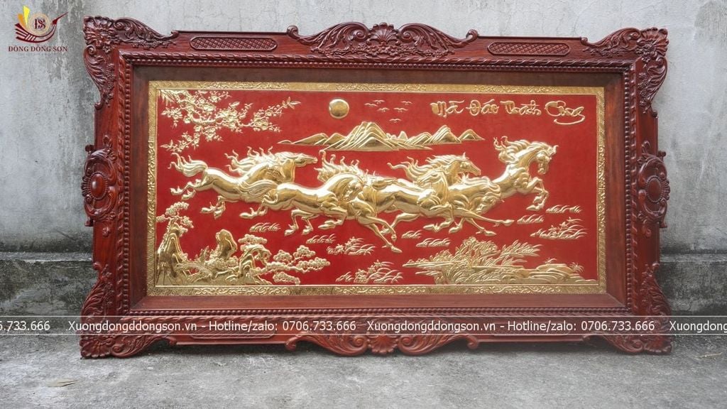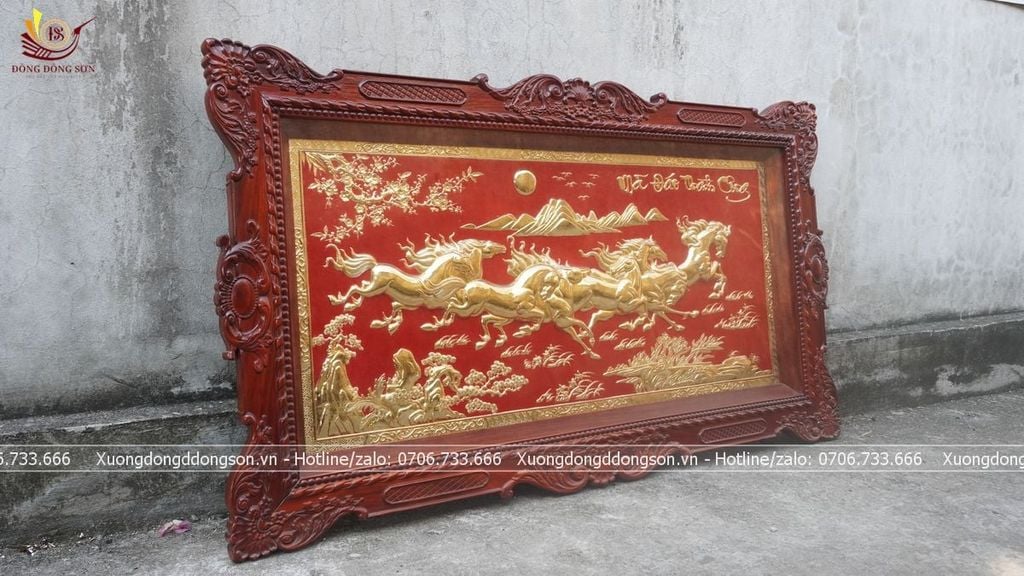 | Chất liệu | - Khung gỗ hương - Tranh được làm bằng đồng vàng nguyên tấm |