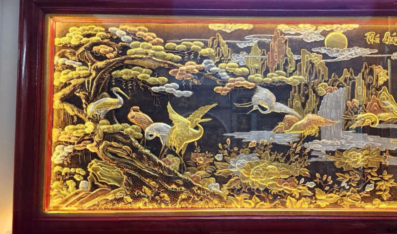 | Chất liệu | - Khung gỗ Sồi Nga - Tranh được làm bằng đồng vàng nguyên tấm |