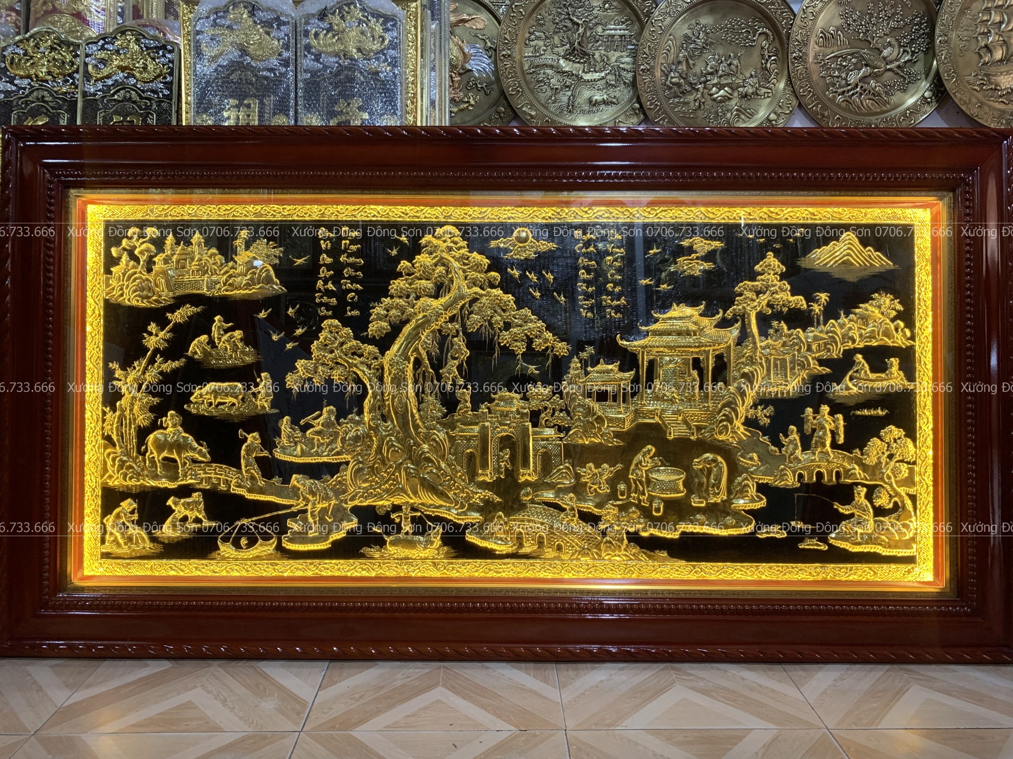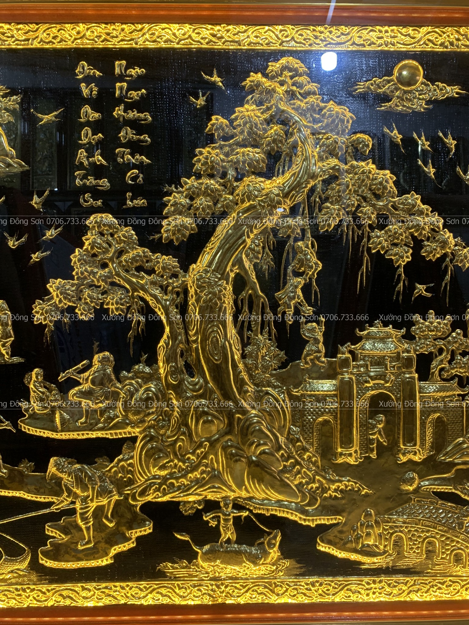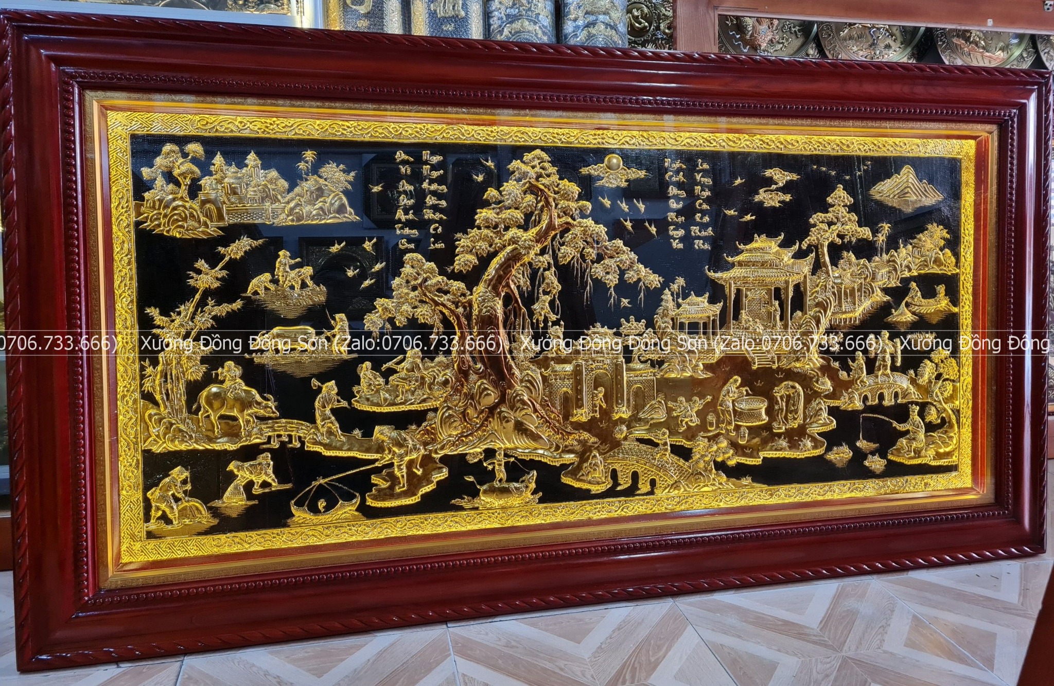 | Màu sắc | - Màu tấm đồng nền đen dát vàng - Khung gỗ làm theo màu sắc yêu cầu |