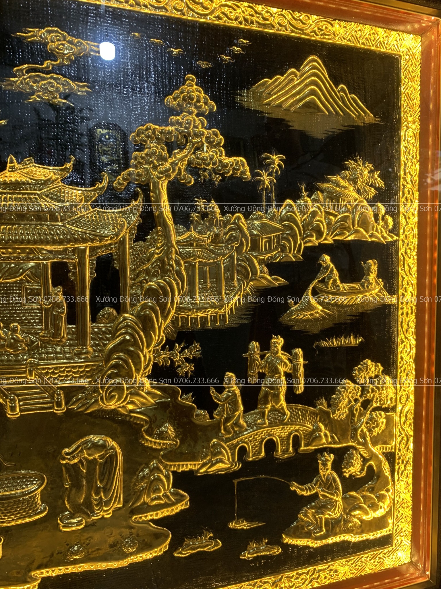 | Chất liệu | - Khung gỗ Sồi Nga - Tranh được làm bằng đồng vàng nguyên tấm |
