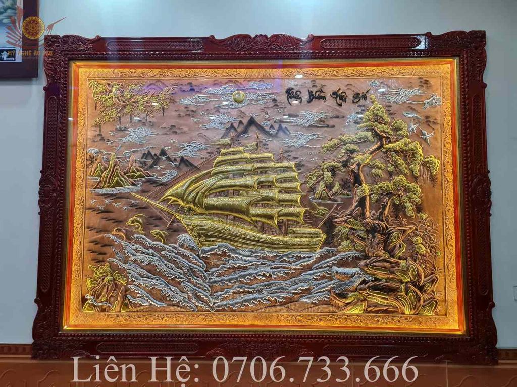 | Chất liệu | - Khung gỗ Sồi Nga - Tranh được làm bằng đồng vàng/ đỏ nguyên tấm |