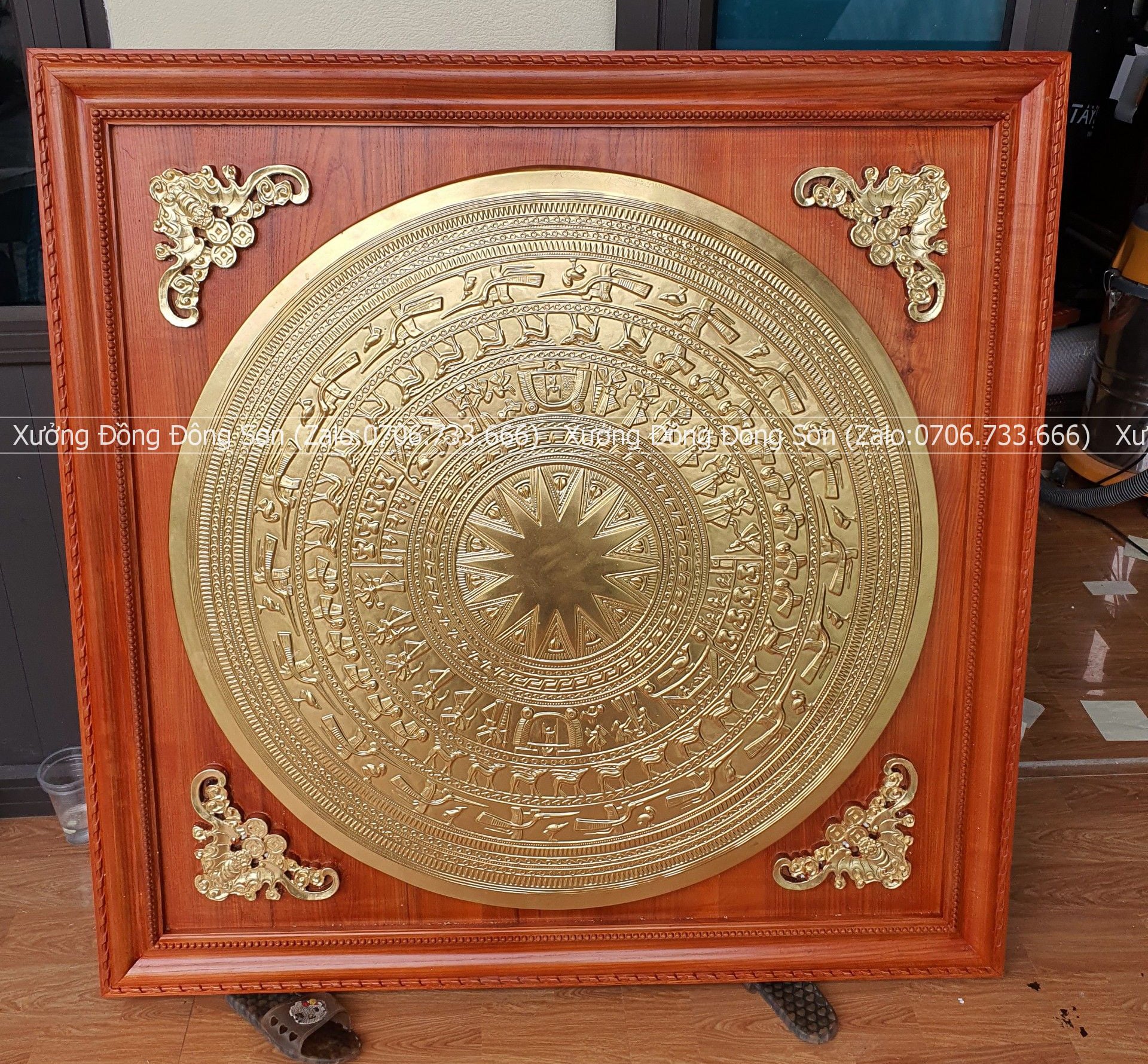 | Quy cách | - Khung gỗ sồi Nga sắc nét. Gỗ chuẩn, không cong vênh, không mối mọt, không mắt gỗ. Kích thước phủ bì khung gỗ 90*90 cm - Mặt trống đường kính 60 được làm bằng đồng vàng nguyên tấm, thúc tay hoa văn trên mặt trống đồng - Mặt trống và bo góc được dát vàng |