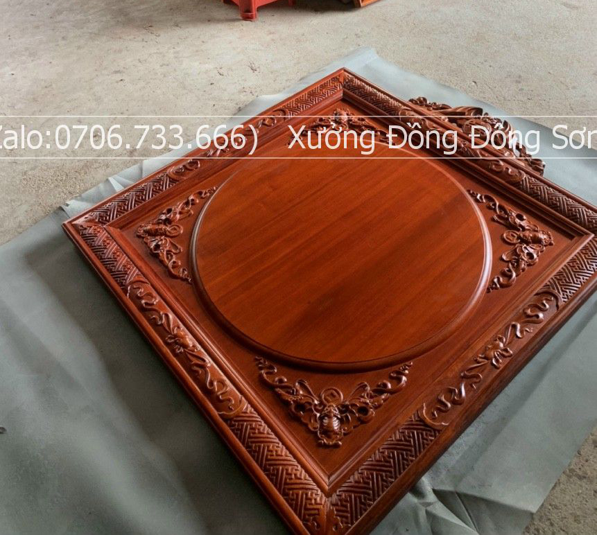 | Quy cách | - Khung gỗ hương nguyên tấm, đục hoa văn liền tấm gỗ. Gỗ chuẩn, không cong vênh, không mối mọt, không mắt gỗ. Kích thước 100*100 ( chưa tính con rơi) - Mặt trống đồng đỏ đúc thủ công, được dát vàng 24k. Đường kích 70cm |
