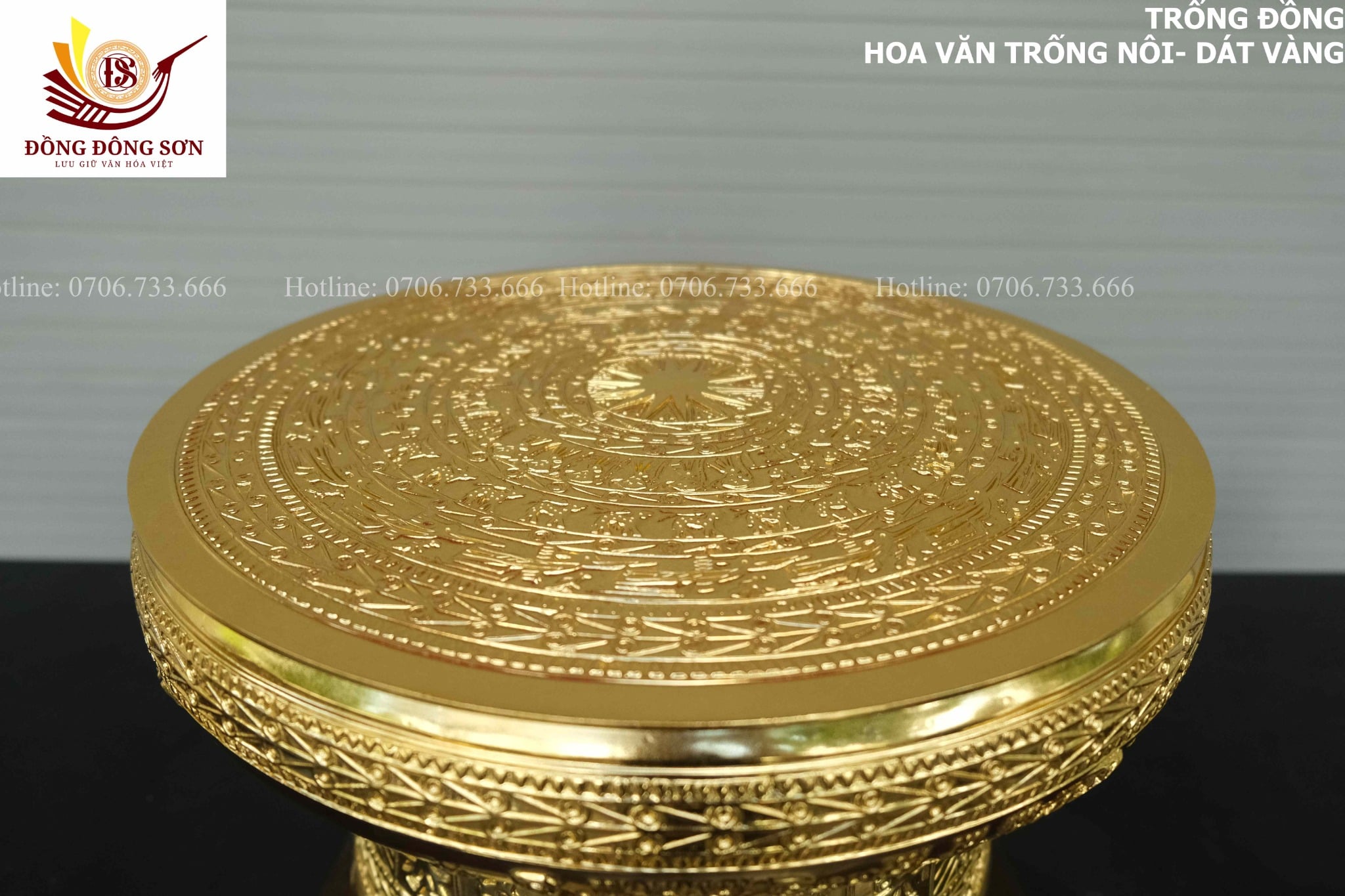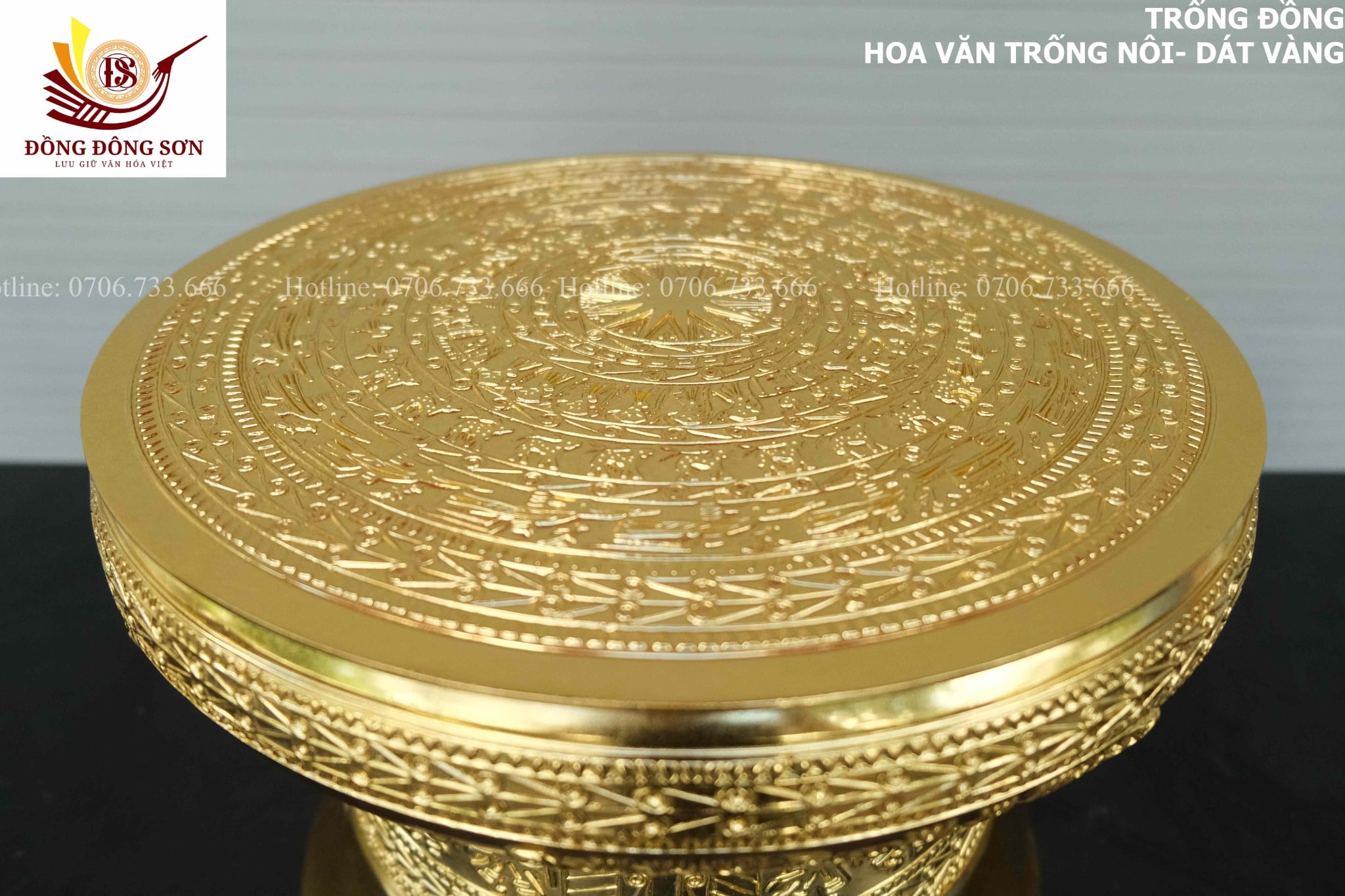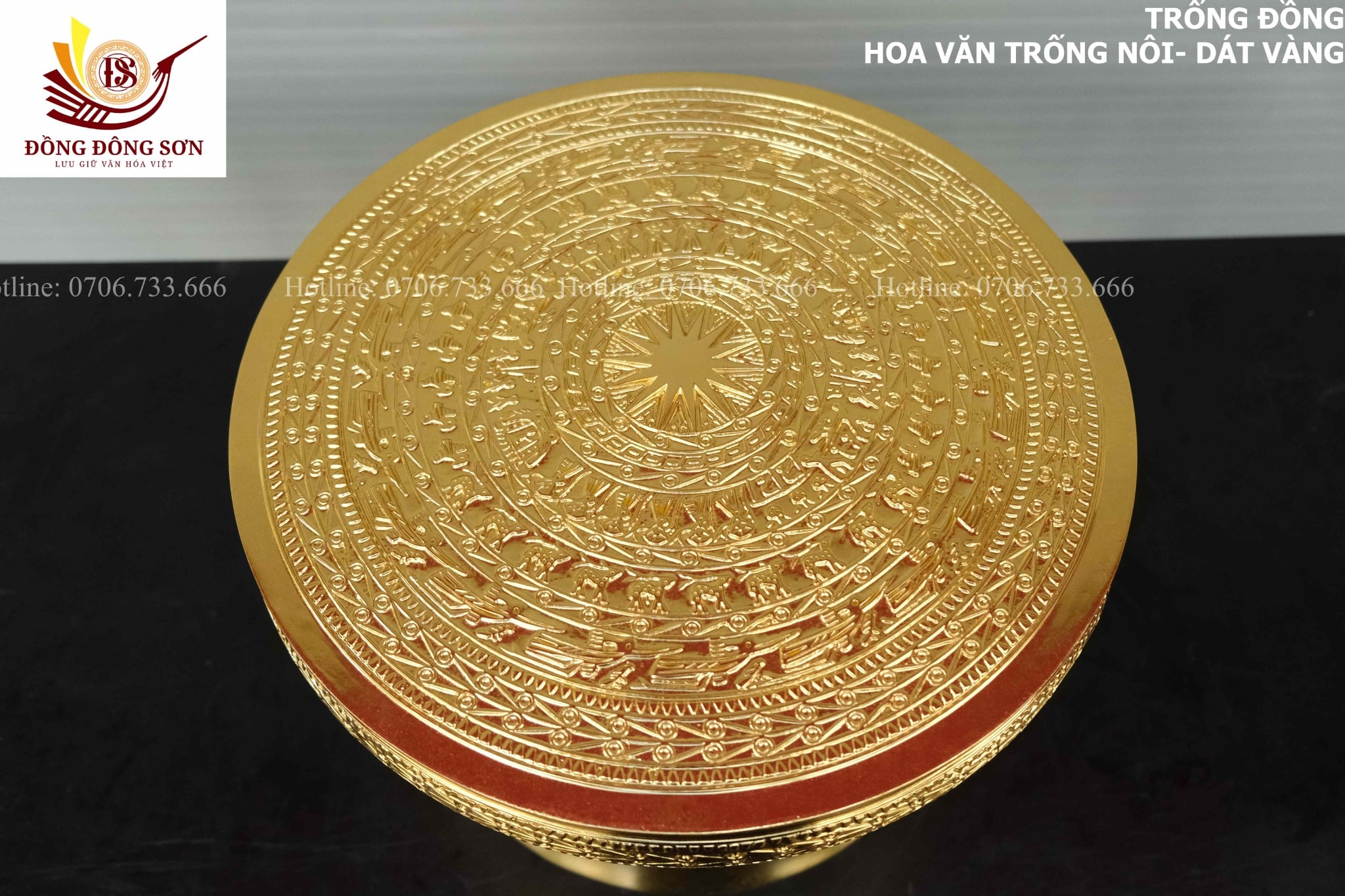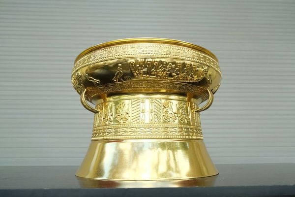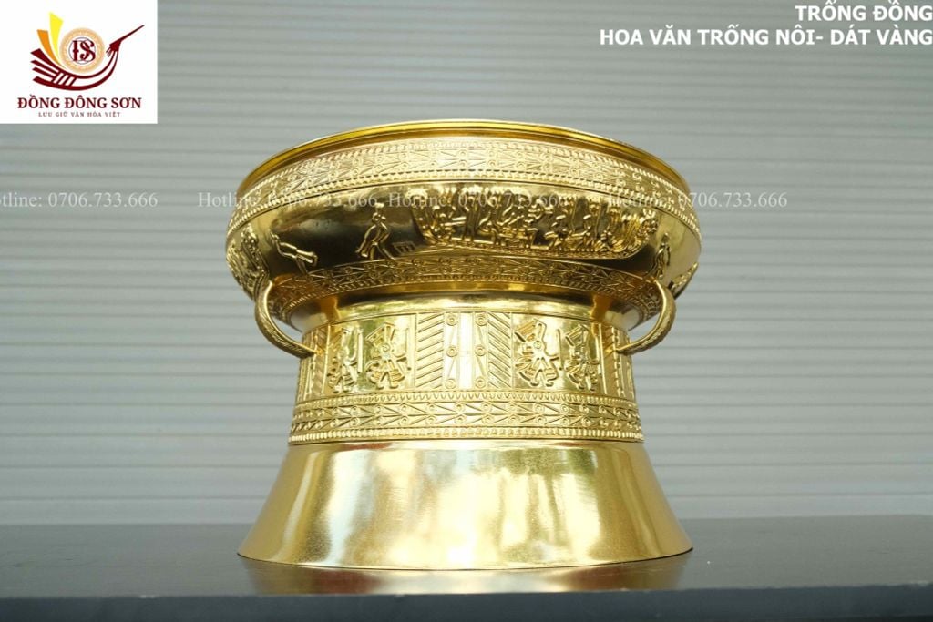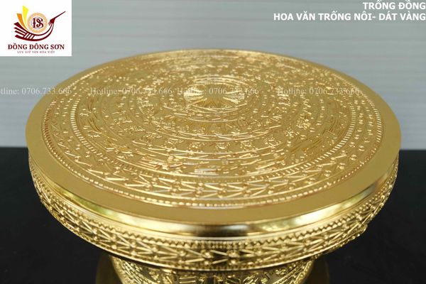 | Quy cách | - Trống đồng được đúc hoàn toàn thủ công - Tất cả các công đoạn làm đều được những nghệ nhân lâu năm của làng nghề tạo nên. - Họa tiết trống là họa tiết hoa văn Trống Ngọc Lũ, với đặc trưng tiêu biểu là các đường nét hoa văn NỔI, sắc xảo, yêu cầu tay nghề thợ cao. - DÁT VÀNG 18k tinh xảo |