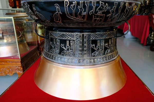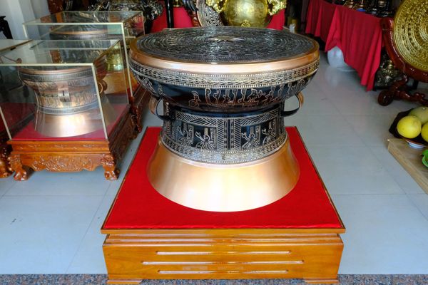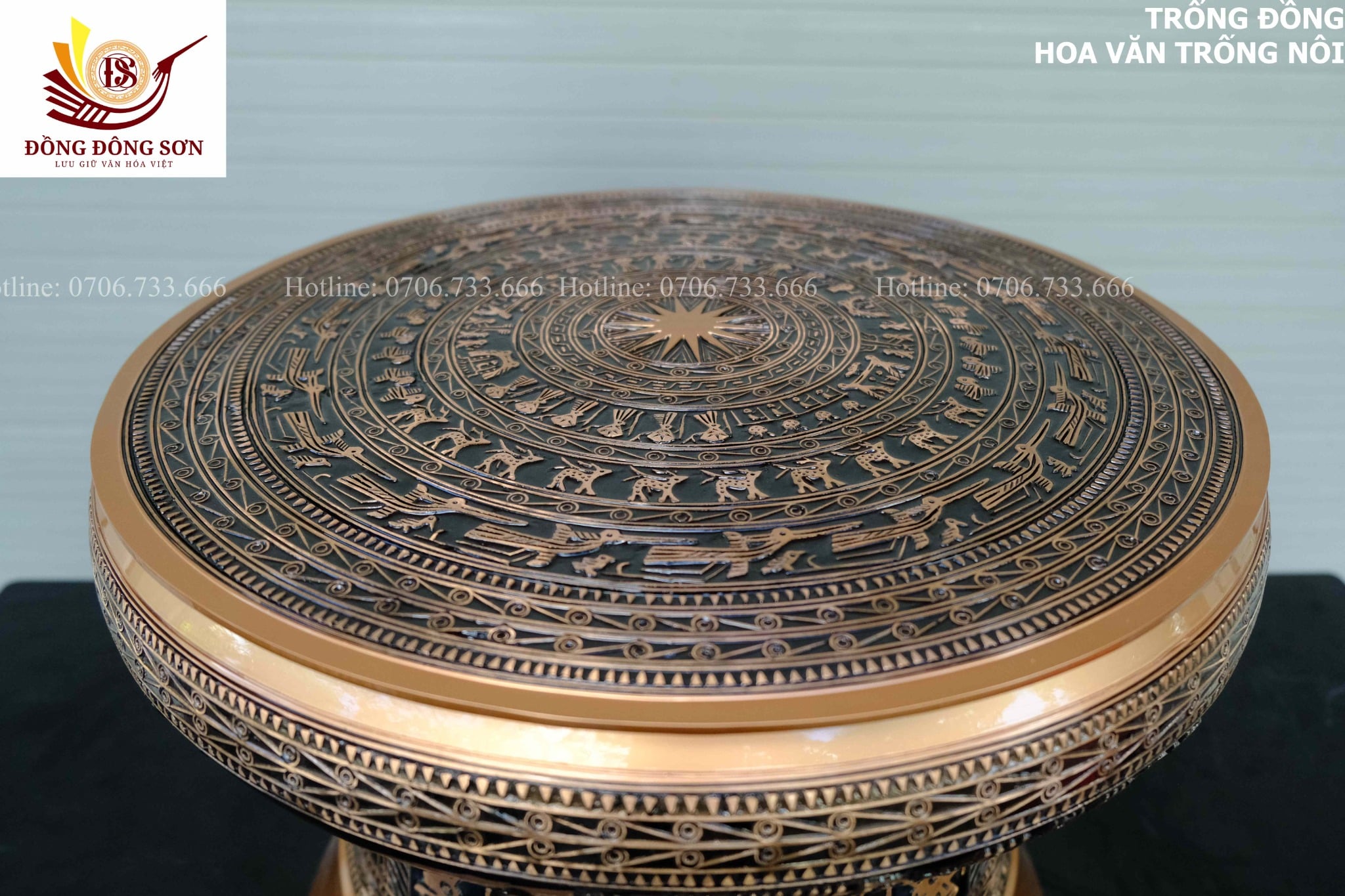 | Quy cách | - Trống đồng được đúc hoàn toàn thủ công - Tất cả các công đoạn làm đều được những nghệ nhân lâu năm của làng nghề tạo nên. - Họa tiết trống là họa tiết hoa văn Trống Ngọc Lũ, với đặc trưng tiêu biểu là các đường nét hoa văn NỔI sắc xảo, yêu cầu tay nghề thợ cao. |