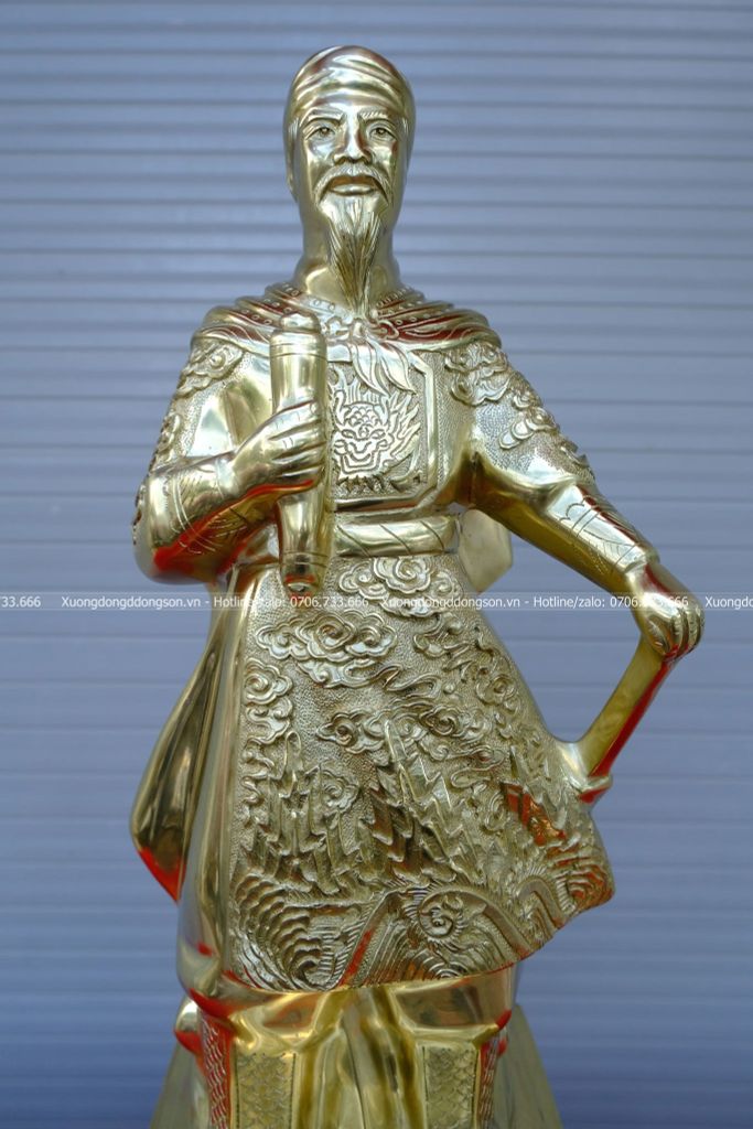Trần Quốc Tuấn vị anh hùng kiệt xuất của dân tộc Việt Nam ta, người đã có công rất lớn trong lịch sử của nước nhà với 3 lần đánh tan giặc Nguyên Mông. Ông không chỉ là vị anh hùng dân tộc, nhà quân sự kiệt xuất thời Trần mà còn là một nhà chính trị lỗi lạc, tài đức vẹn toàn. Thờ tượng đồng Trần Quốc Tuấn có tác dụng cực lớn trong việc trấn trạch phong thủy, xua đuổi tà ma và đẩy lùi những vận khí xấu. Khi bày trí tượng Hưng Đạo vương, gia chủ sẽ gặp nhiều thuận lợi về mặt đất cát, gia trạch, tránh được các vận xấu hoặc bệnh tật và tà ma quấy nhiễu gia đình.