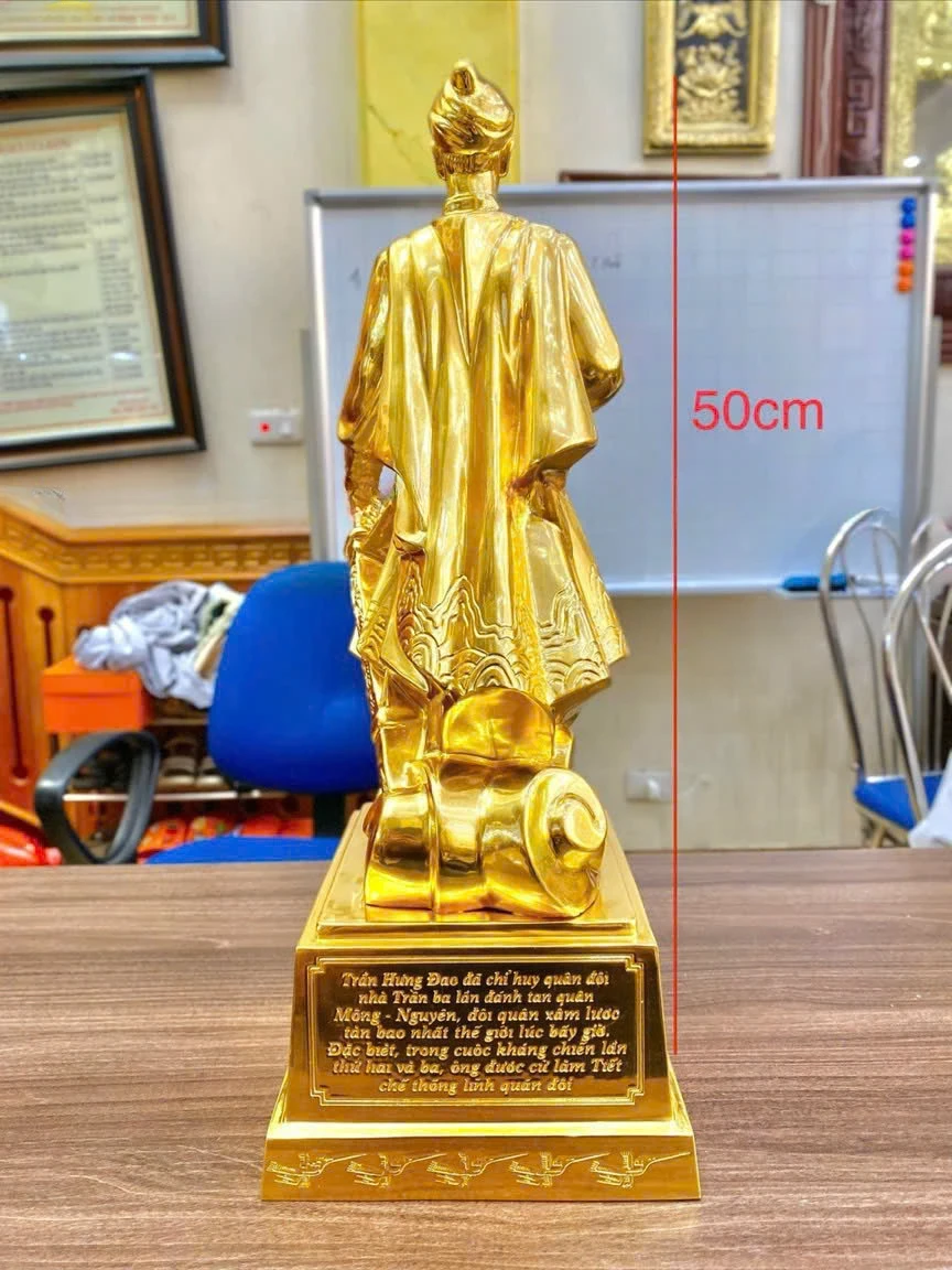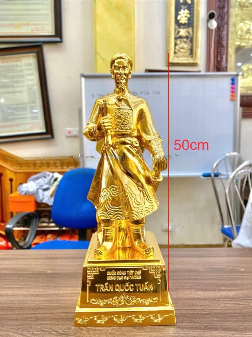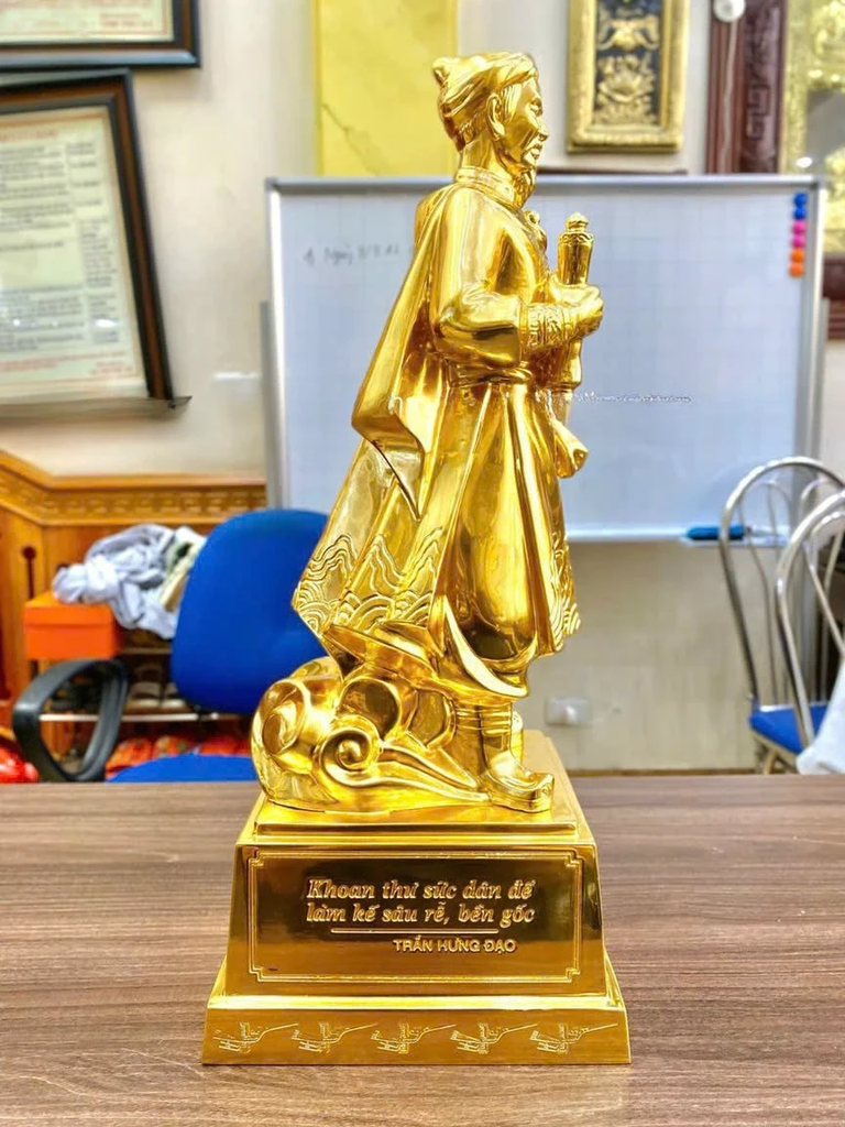 Trần Quốc Tuấn vị anh hùng kiệt xuất của dân tộc Việt Nam ta, người đã có công rất lớn trong lịch sử của nước nhà với 3 lần đánh tan giặc Nguyên Mông. Ông không chỉ là vị anh hùng dân tộc, nhà quân sự kiệt xuất thời Trần mà còn là một nhà chính trị lỗi lạc, tài đức vẹn toàn. Thờ tượng đồng Trần Quốc Tuấn có tác dụng cực lớn trong việc trấn trạch phong thủy, xua đuổi tà ma và đẩy lùi những vận khí xấu. Khi bày trí tượng Hưng Đạo vương, gia chủ sẽ gặp nhiều thuận lợi về mặt đất cát, gia trạch, tránh được các vận xấu hoặc bệnh tật và tà ma quấy nhiễu gia đình.