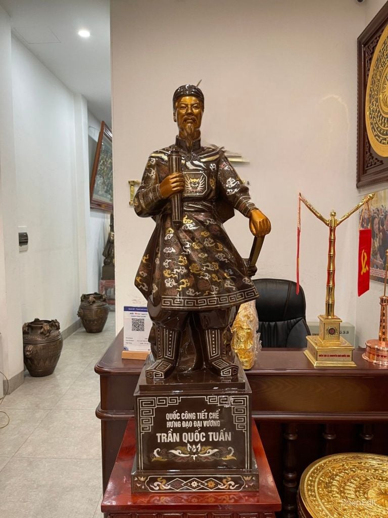 Trần Quốc Tuấn vị anh hùng kiệt xuất của dân tộc Việt Nam ta, người đã có công rất lớn trong lịch sử của nước nhà với 3 lần đánh tan giặc Nguyên Mông. Ông không chỉ là vị anh hùng dân tộc, nhà quân sự kiệt xuất thời Trần mà còn là một nhà chính trị lỗi lạc, tài đức vẹn toàn. Thờ tượng đồng Trần Quốc Tuấn có tác dụng cực lớn trong việc trấn trạch phong thủy, xua đuổi tà ma và đẩy lùi những vận khí xấu. Khi bày trí tượng Hưng Đạo vương, gia chủ sẽ gặp nhiều thuận lợi về mặt đất cát, gia trạch, tránh được các vận xấu hoặc bệnh tật và tà ma quấy nhiễu gia đình.